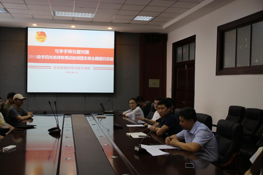 2019年6月14日下午三点,永利yl234112015级李四光地球物理试验班毕业主题团日活动在地质宫519召开,本次活动有幸邀请到李宇师兄参加,公司党委副书记兼副经理宋宏宇、团委书记司镇通以及2015级李四光地球物理试验班全体同学参加了本次活动。