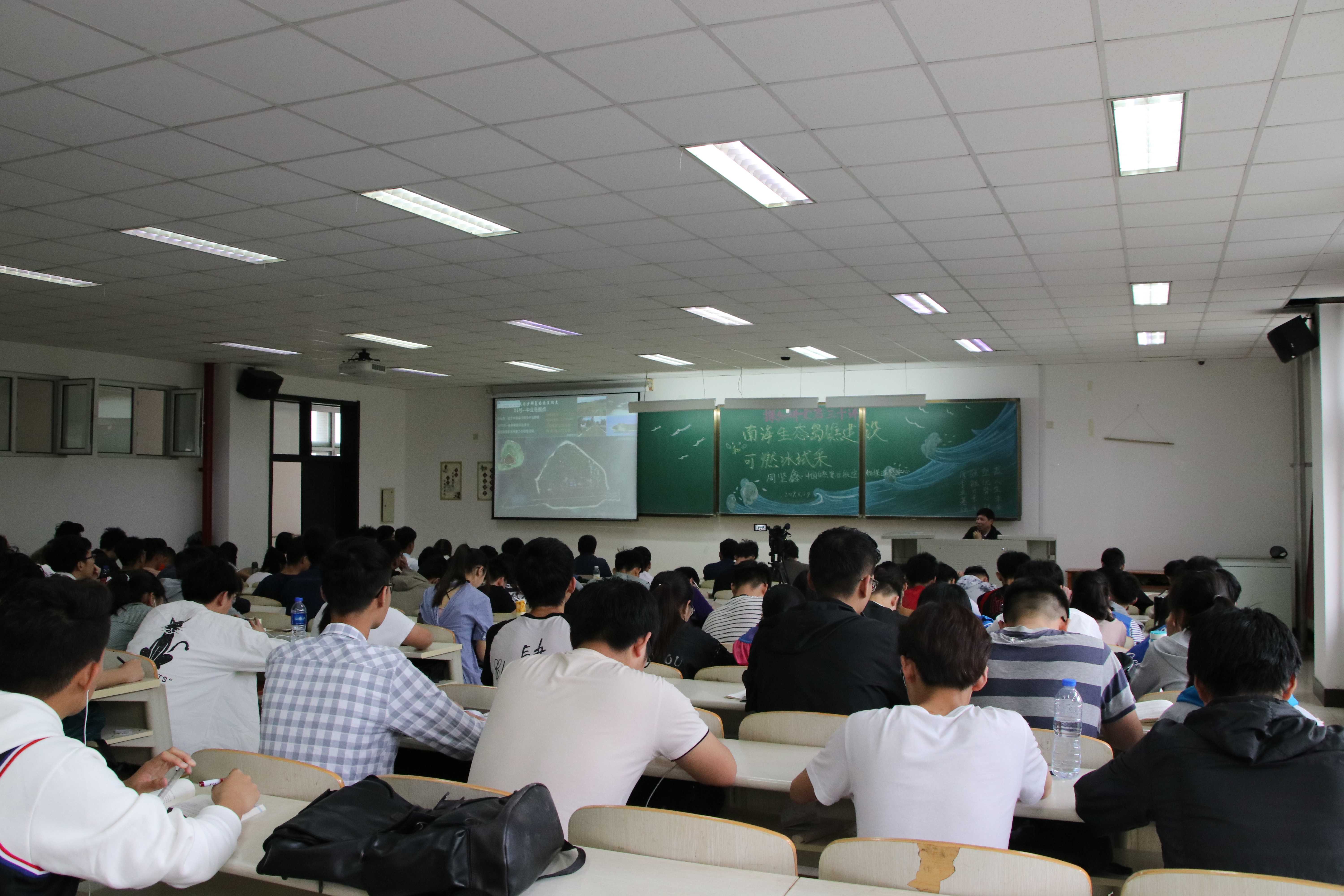 首先,周教授从南海的历史、生态、能源等角度入手,加深了同学们对南海的基本认识。之后周教授深入浅出地向同学们介绍了南海岛礁建设对国家的重要战略意义,并以我们国家岛礁建设的重要成果永暑岛(礁)为例,向大家讲述了我国在岛礁建设上所遇到的种种困难,和利用现有资源进行设备、软件技术等方面更新突破的过程。随后周教授向同学们讲述了可燃冰的试开采情况,并对可燃冰的开采流程做了生动的描述。最后,公司部分同学针对海洋地球物理学发展现状、遥感在海洋勘探中的应用等问题向周教授进行提问,周教授详尽又亲切地向同学们一一解答了这些问题,并殷切期盼在座同学们能夯实专业基础,努力报效祖国。