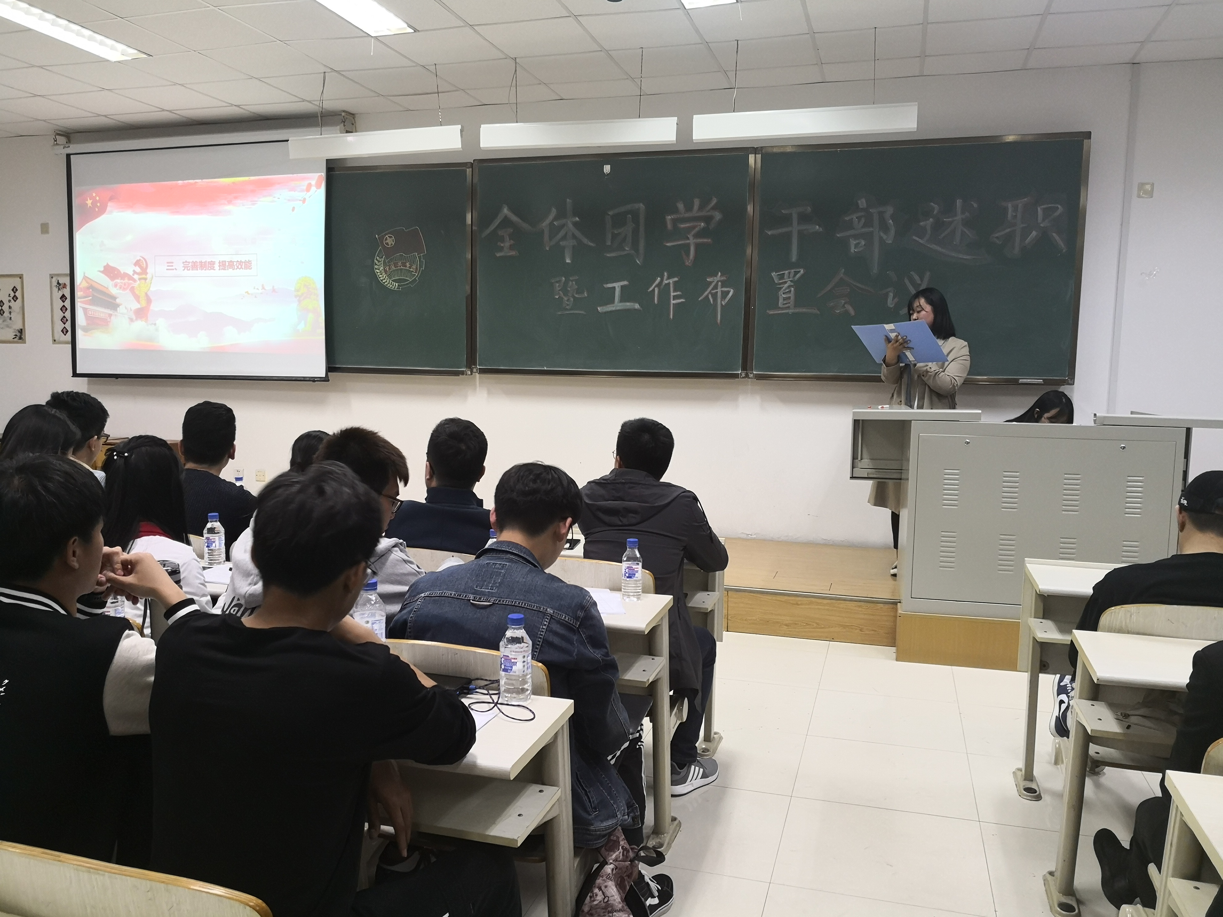 本次会议主要是为了总结上学期各项工作,并安排部署新学期工作重点。会议开始,在团委常务副书记孟祥羽、员工会主席高子皓以及社联主席司峻石的带领下,团委、员工会及各社团的各个部门部长进行了工作述职,并对今后的工作进行了展望。各部门部长通过精心准备的述职报告充分地让大家了解到团学组织于上学期所取得的工作成果,并给大家呈现了一份完整的工作蓝图。他们用激情的演讲,丰硕的成果让2018级新生对未来的团学工作充满了憧憬与向往。各部门部长述职结束后,学工办主任金璐老师针对2016级团干部述职作点评讲话,使团学干部们受益匪浅。最后,团委书记司镇通老师对本学期工作进行部署,司镇通老师对团学整体发展作出规划,又对团学各个部门的上半年活动做出详细要求,点明了同学们的工作方向。最后司镇通老师对本次大会作出总结,并指出了团学工作中的不足之处,他希望大家能够改进不足,继续努力。