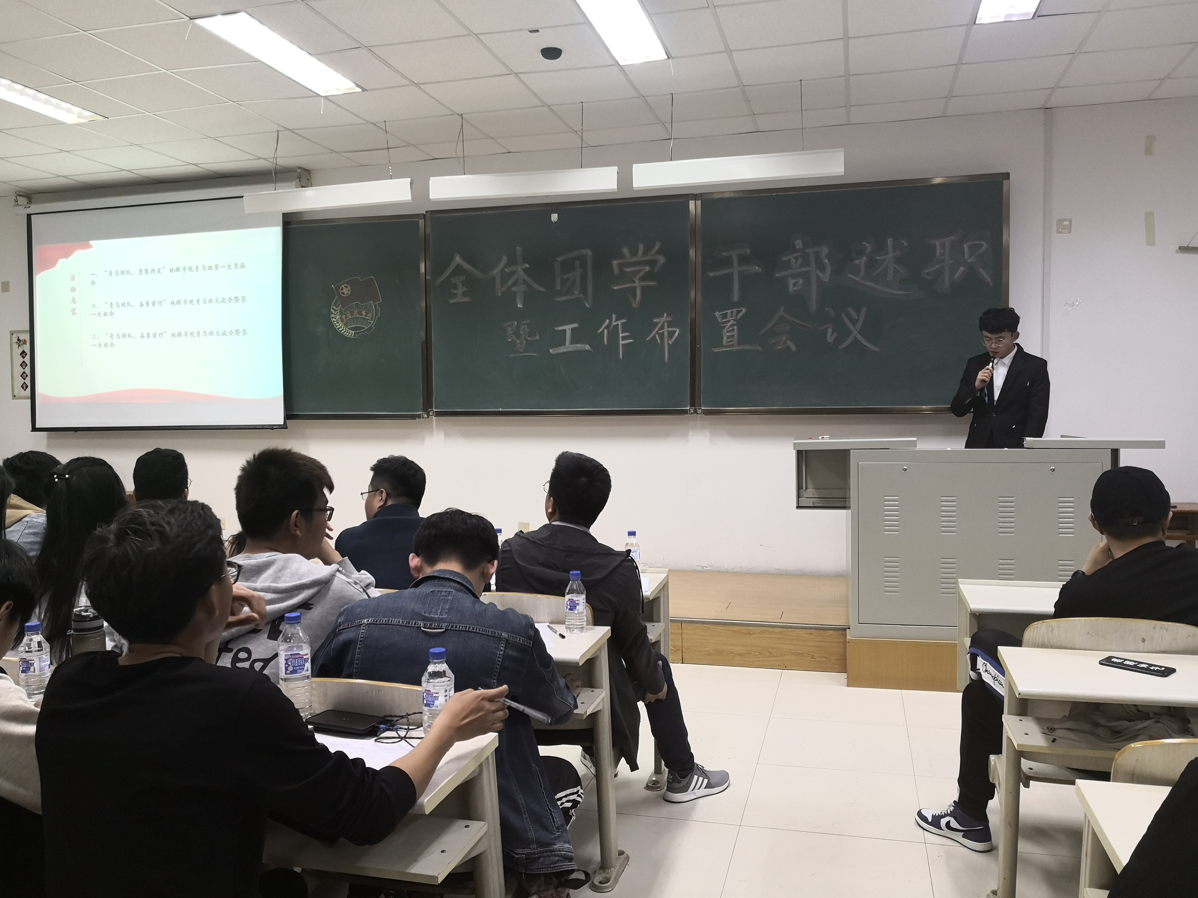 2019年4月15日晚六点半,永利yl23411团委于李四光206教室召开了团学组织中期工作述职暨新学期团学干部工作会议。永利yl23411员工工作办公室主任金璐老师,团委书记司镇通老师,2018级辅导员樊轩铄老师,团委副书记兼研究生团总支书记张鹏,研究生会主席杨贺天以及各年级员工代表,2018届全体团学干部参加了此次的会议。