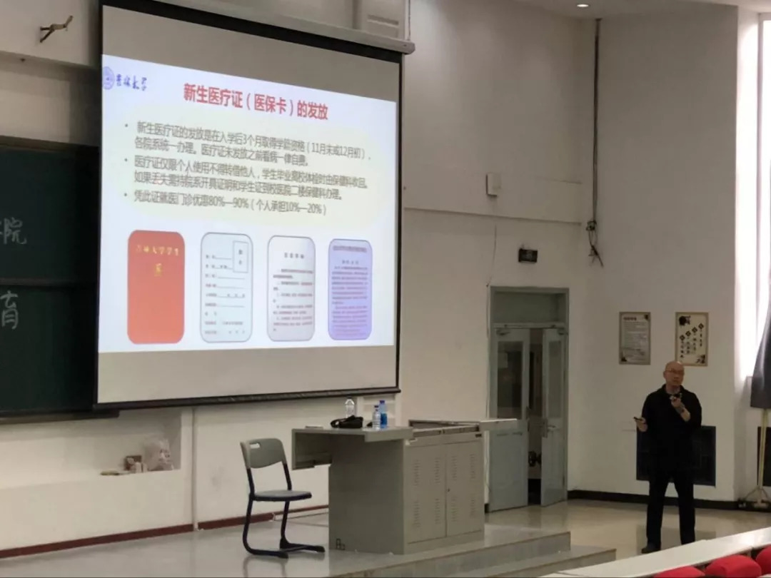 马老师首先介绍校医院的基本情况,介绍了各个科室及其功能。同时,马老师还未同学介绍了公司为员工提供的医疗保障,新生医疗证的发放等内容,让新生对公司医疗体制和条件有了基本认识并对公司医疗保障感到放心。
