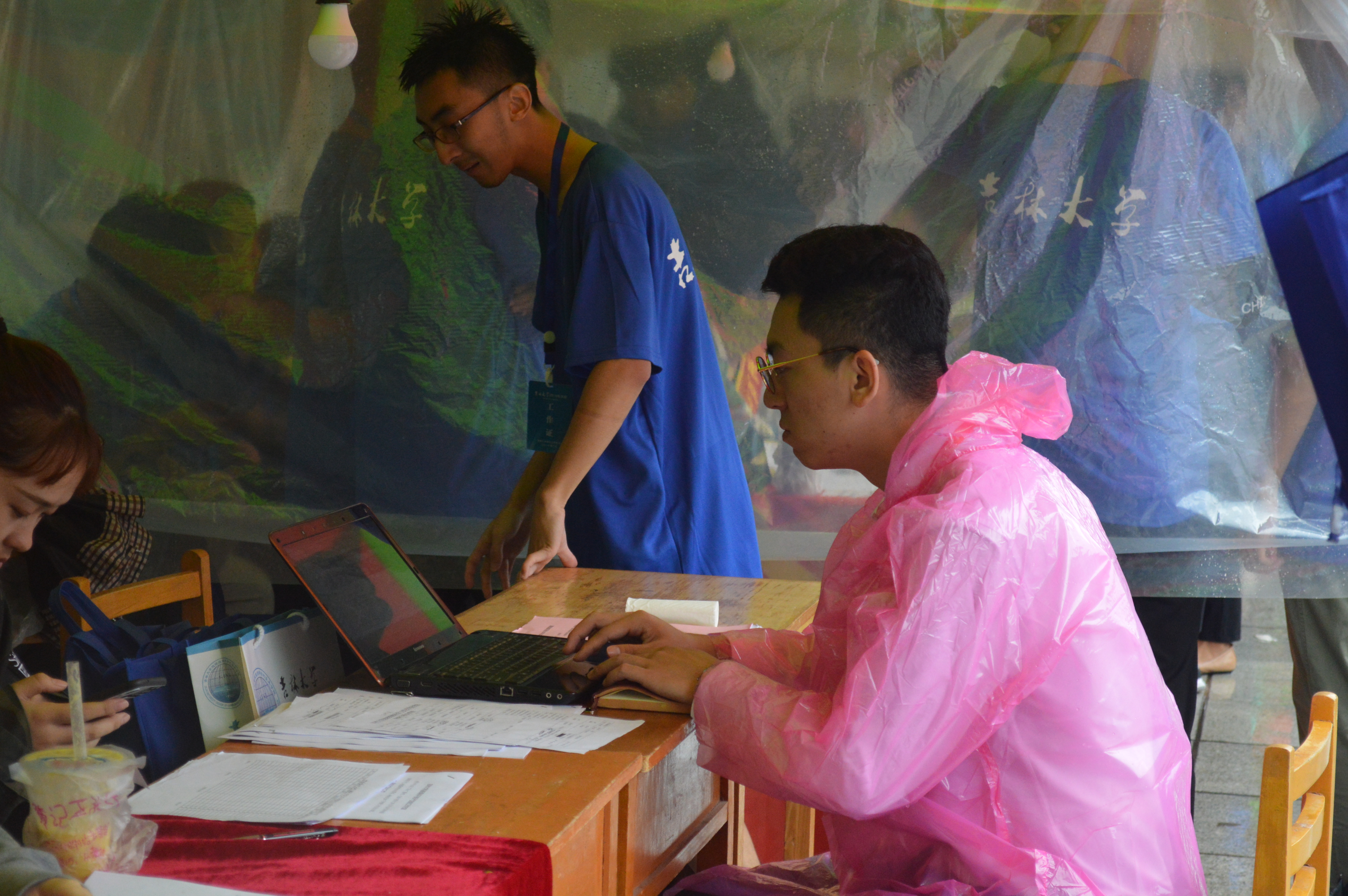 下午一时,迎新工作正式开展,新生早早在帐篷外排起长队,虽然风雨很大,但是新生们的报道热情以及工作人员的工作热情没有丝毫减退,工作人员严谨、娴熟,认真、热情,绿色通道为经济条件困难和受灾地区的新生详细介绍了国家和公司的资助政策,整个报到过程高效、迅速。深夜里,为迎接夜间到达长春的2018级新生,保证新生在到校后能够回到宿舍休息,代理班长们整夜守候在迎新地点,为深夜到校的同学提供报道服务。