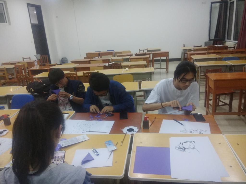 一提起年画,大家脑中浮现出的是可爱的胖娃娃,是山海经里的奇珍异兽,还会是各种著名的戏曲故事。被称为七十二洞天福地的绵竹是年画的发源地之一,其中绵竹年画更是我国四大年画之一,这次活动就请到了来自绵竹的“大佬”。他向我们简单地讲述了有关年画的起源、历史、及发展,令人受益匪浅。活动中,大家围坐在一起,开始了各自的创作,在欢声笑语,互相交流中,大家逐渐完成了自己的作品,一个个可爱的胖娃娃栩栩如生,跃然纸上。接下来开始的就是剪纸,将纸不停的对折,按照一定的特定的轮廓剪下来,最后展开,说起来简单,但是做起来还是十分的需要耐心,一个不小心剪错就有可能前功尽弃,虽然大家在纸上画的轮廓是一样的,但是剪出的结果却完全不同,不禁让大家感叹民间艺术的神奇与美妙。