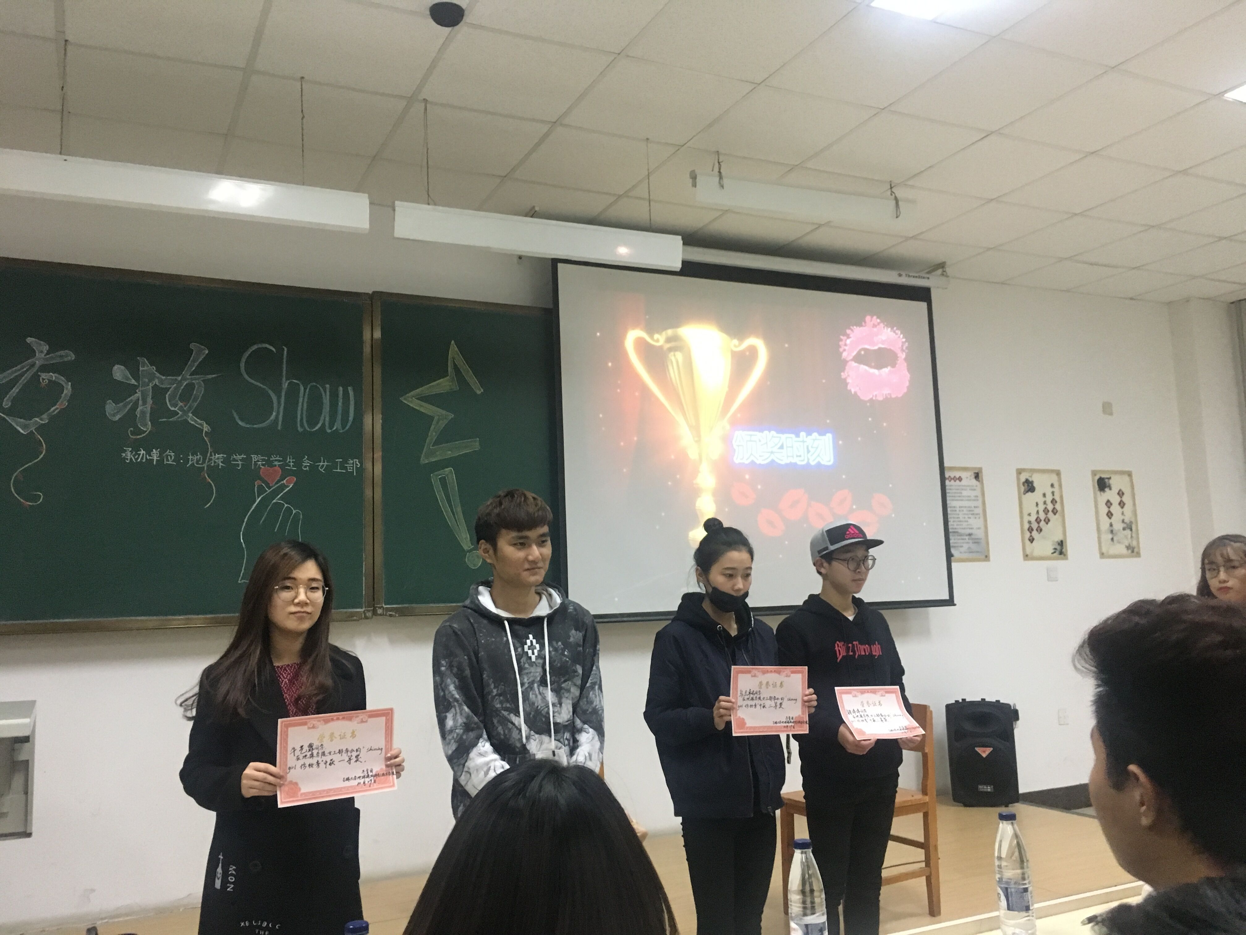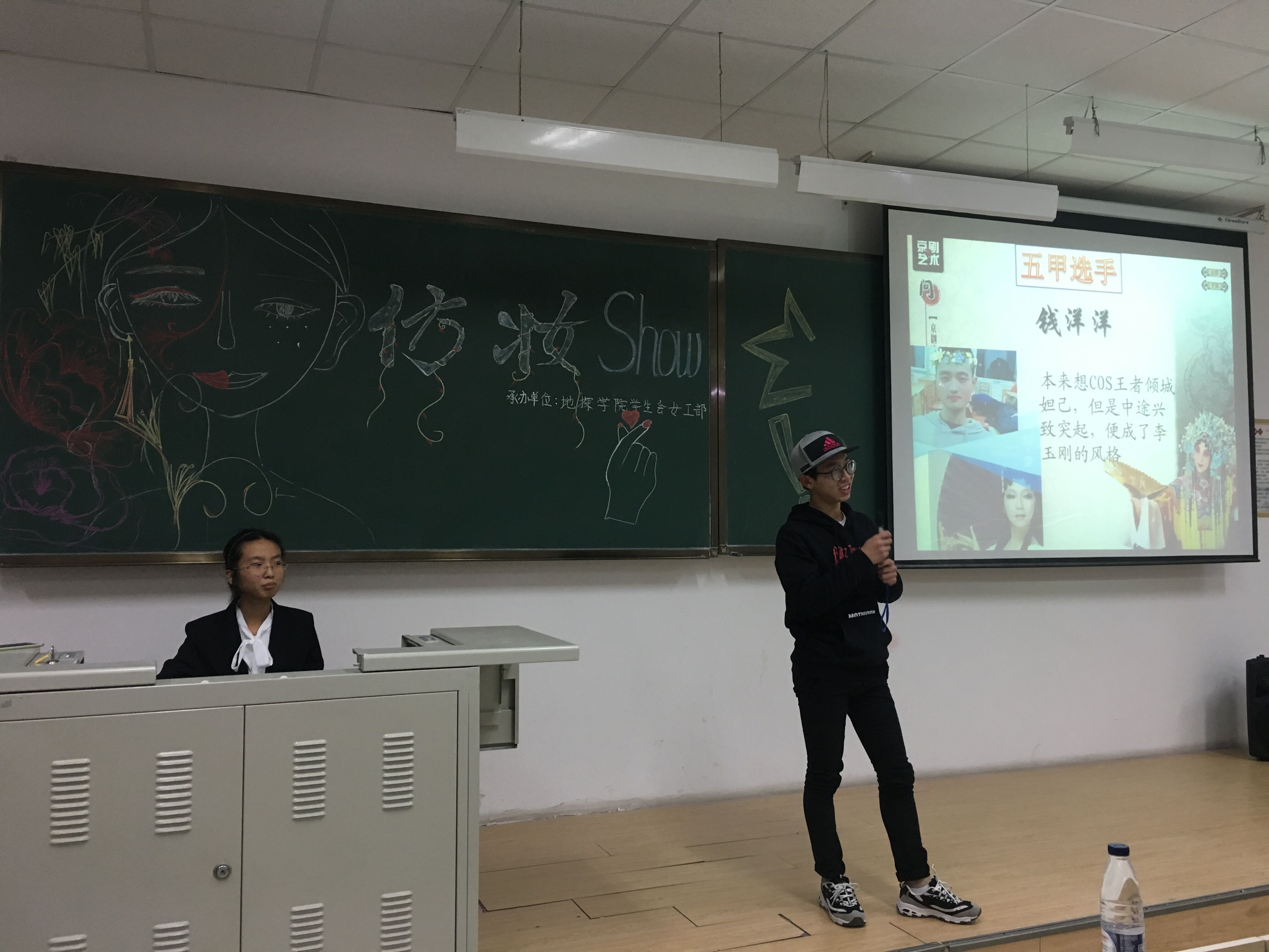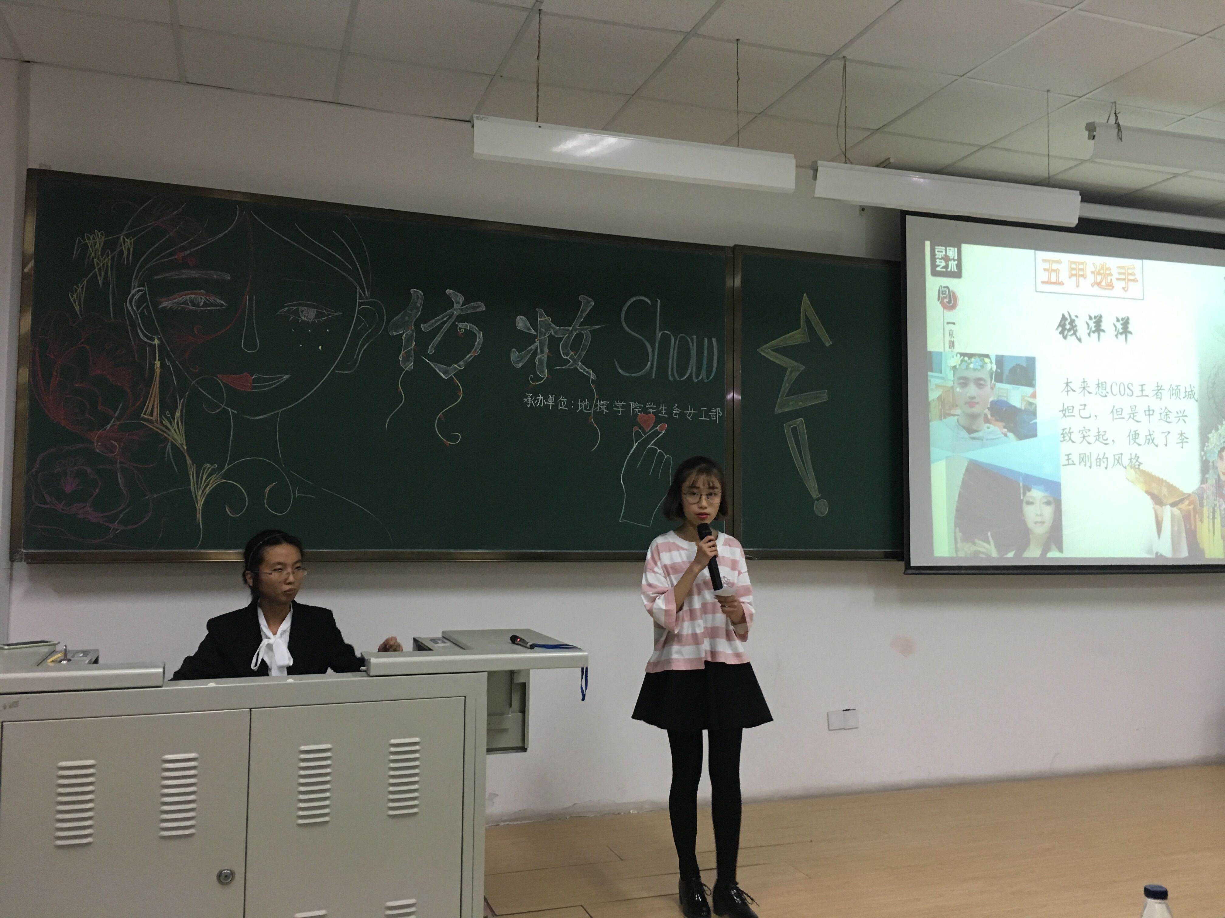 2017年10月29日晚六点半,永利yl23411员工会女工部举办的仿妆show比赛在李四光107举行。员工会副主席栾翰文、员工会秘书长李玉英、女工部部长杨帆、宣传部部长邢旭东以及2017级部分员工参加了本次活动。