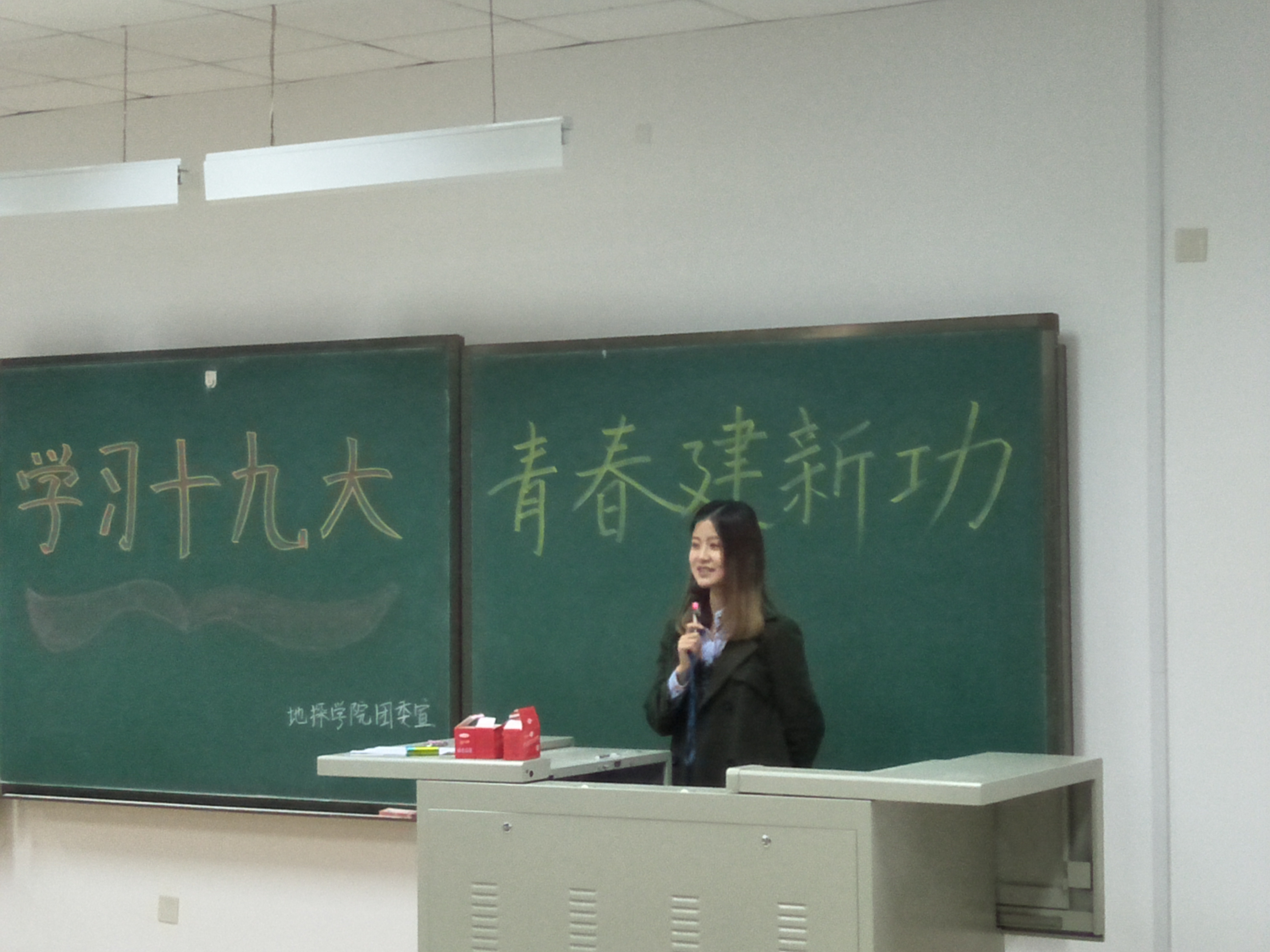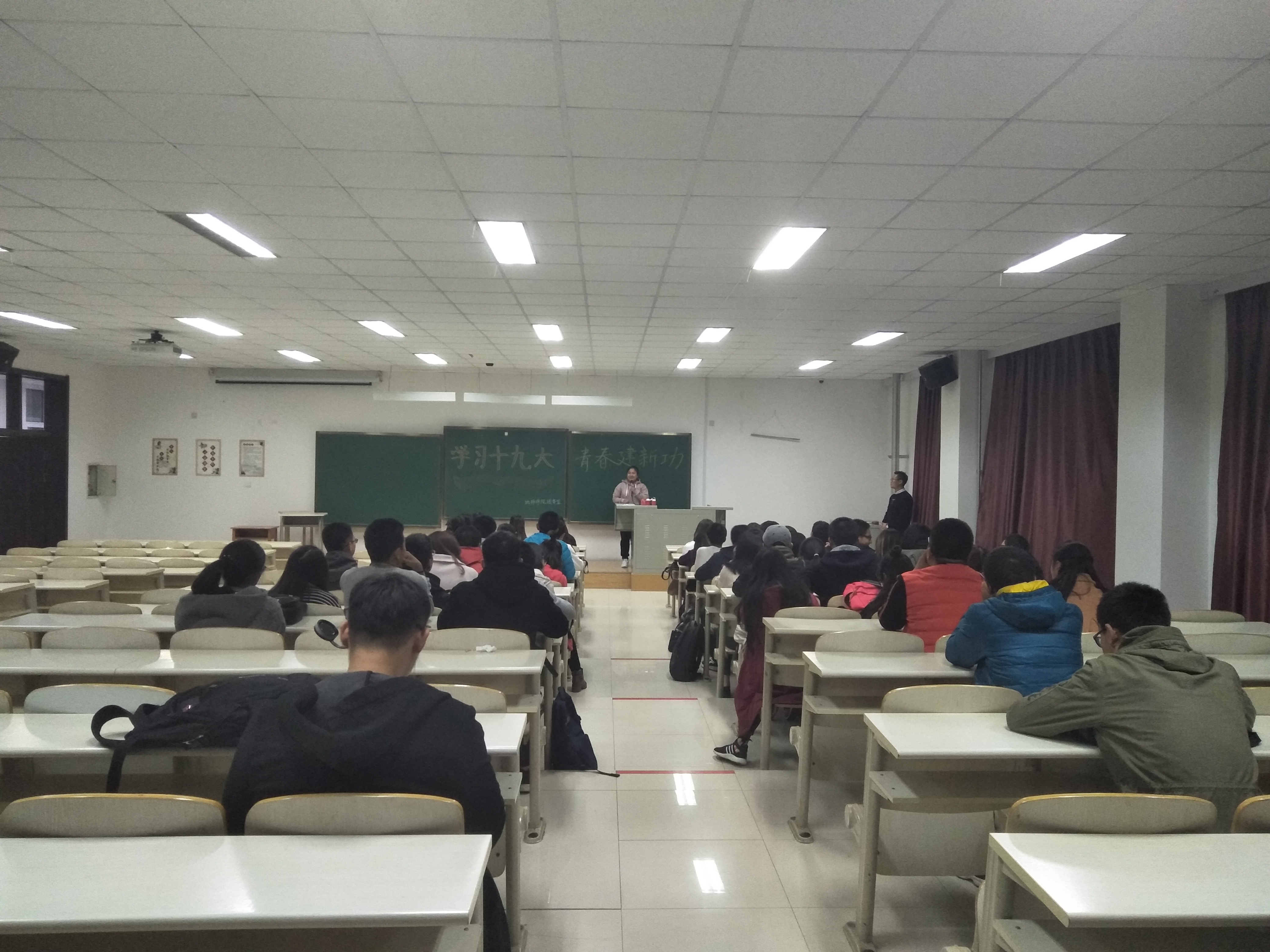 2017年10月28日下午4点30分,在李四光教学楼206教室,由永利yl23411团委常务副书记张泊滔主持的永利yl23411本科生“学习十九大,青春建新功”专题学习会如期举行,永利yl23411各班员工代表参加了此次会议。