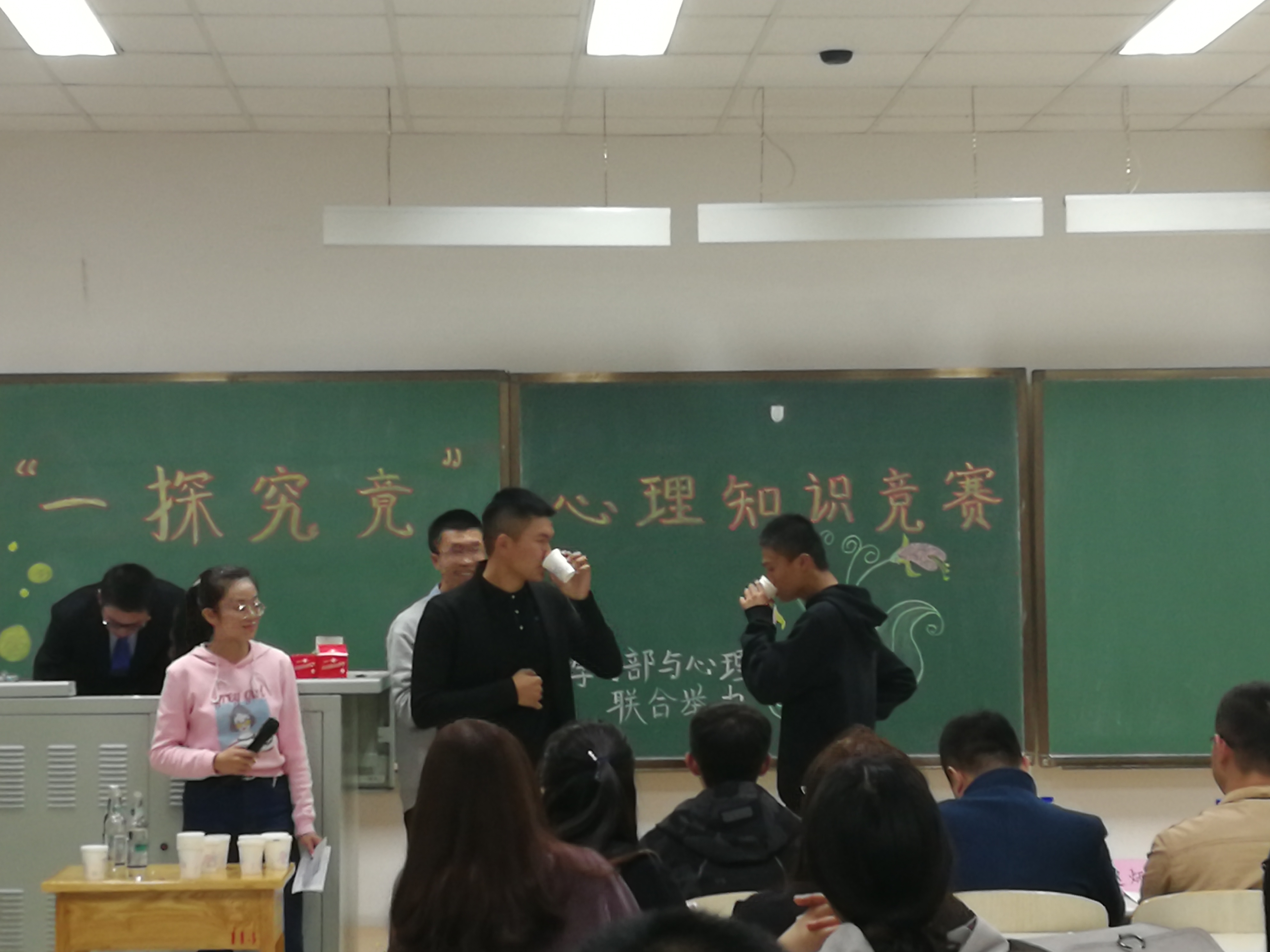 2017年10月21日晚6:30,由永利yl23411员工会学习部和心理部联合举办的“一探究竟”之心里知识竞赛在中心校区李四光楼302室顺利召开。团委书记司镇通老师、员工会主席赵炳辉、学习部部长张鑫,心理部部长韩宏博以及2017级部分员工参加了本次活动。