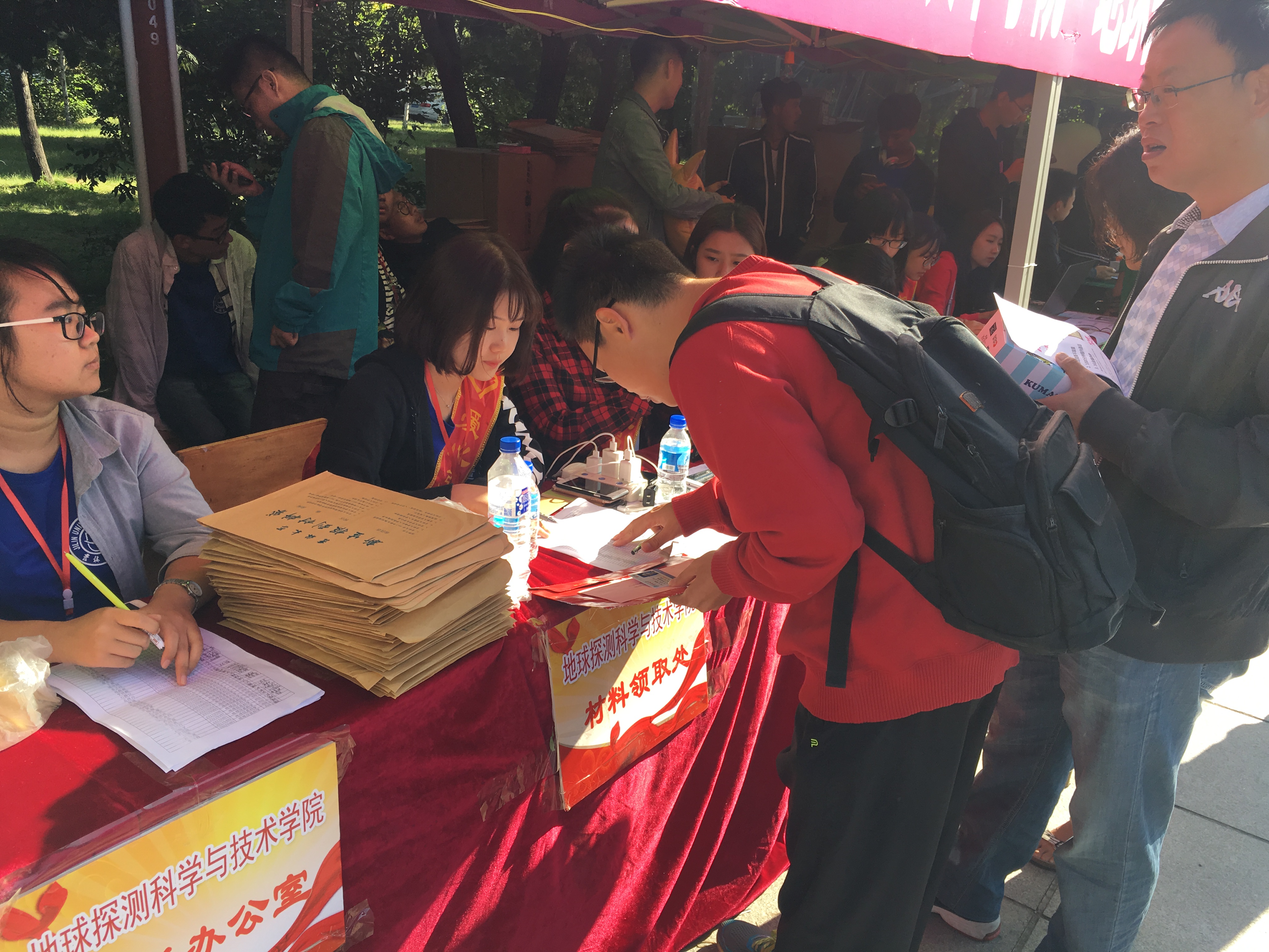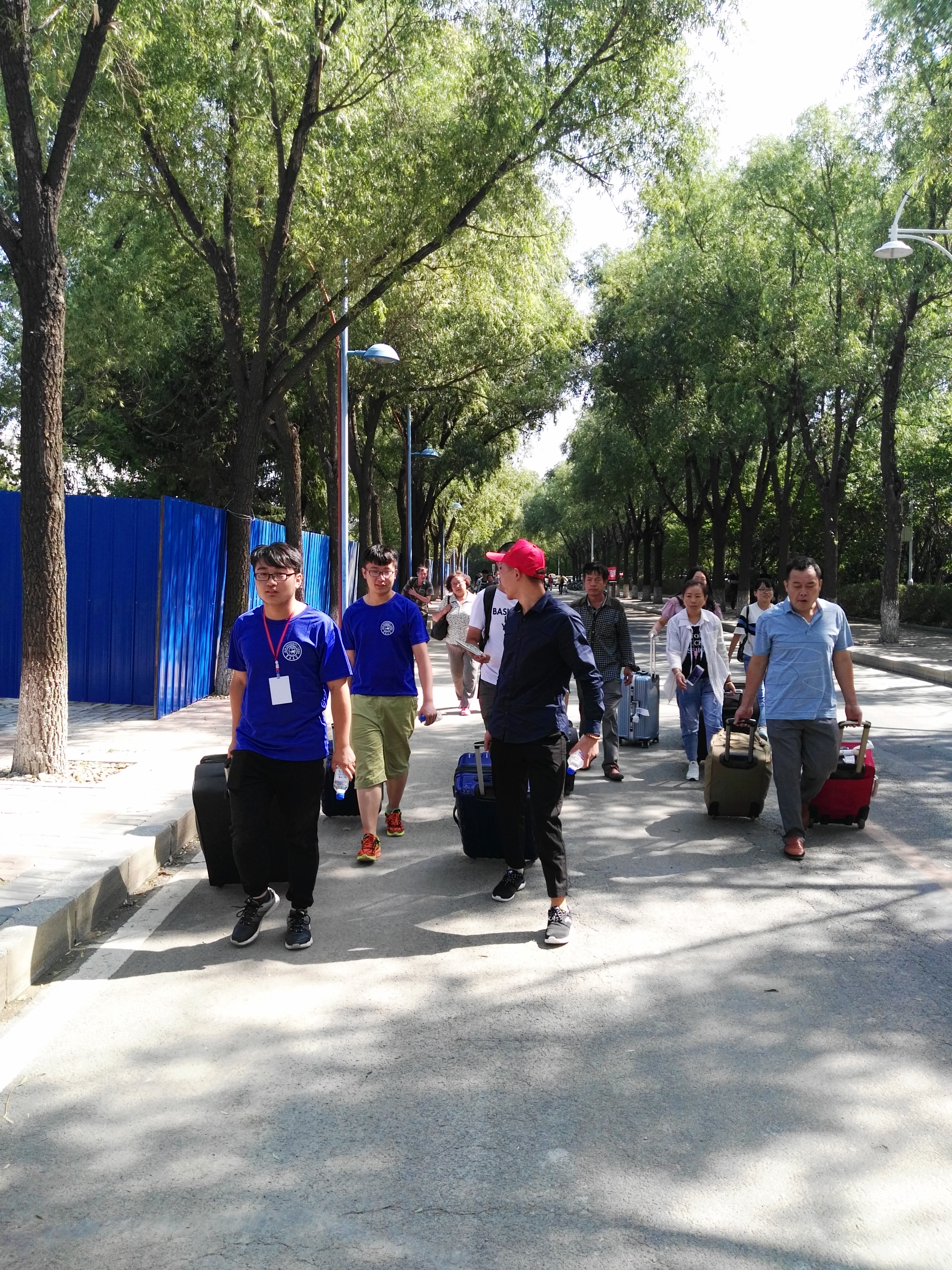 十点左右,一位志愿者突然发现还有一个行李箱遗落在接待区里,为了不让新生和家长着急,一边联系已报到的新生询问,一边派专人进行看护。经过努力,行李终于及时送回了主人的手中。由于今年公司新生女生住文苑,而男生住在偏远的大学城,接送的同学们都相当辛苦,一天结束平均每人下来来回跑了三趟,甚至在最炎热的中午他们也积极地接送并细心地接过家长的行李,毫无怨言。一位同学打趣说,刚才衣服还是干的,送一位同学到大学城,回来就免费洗了一个澡。可是当问其累不累时,他却说:累是累,但挺有意义的。