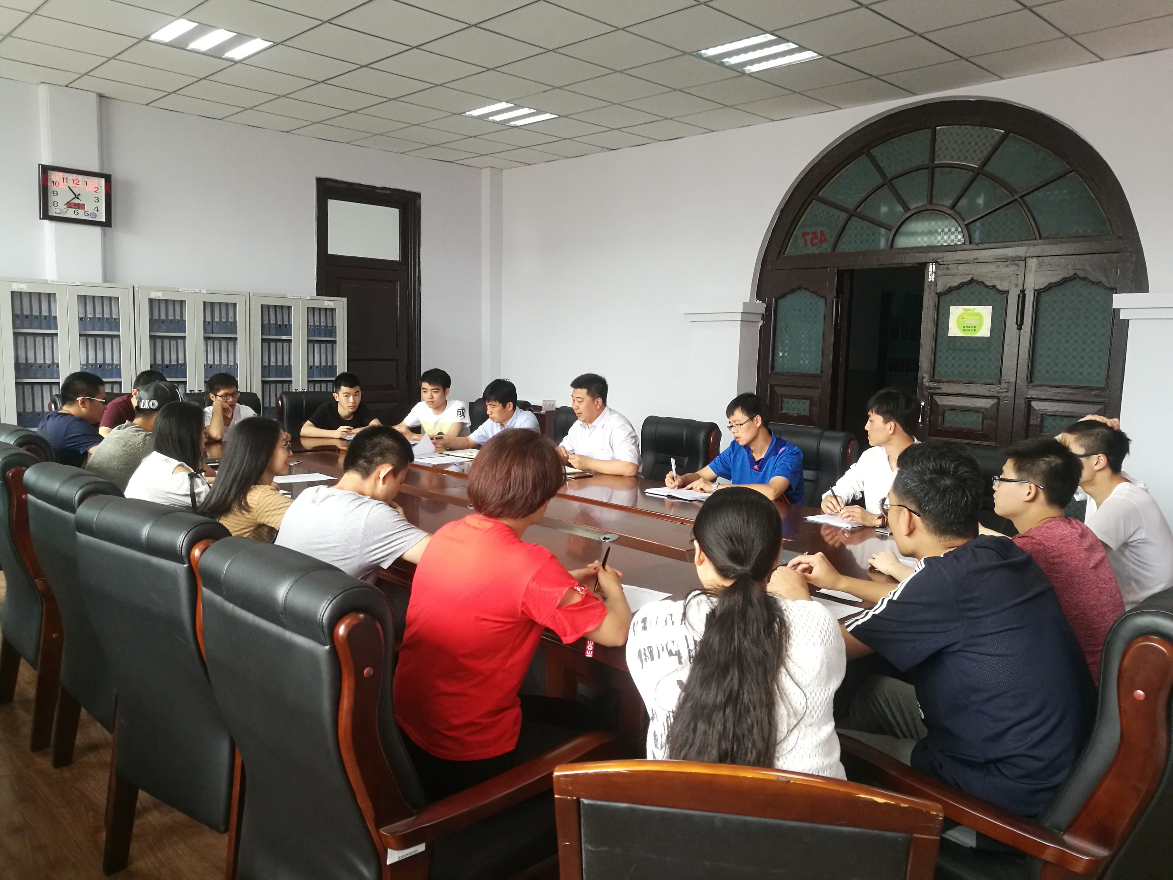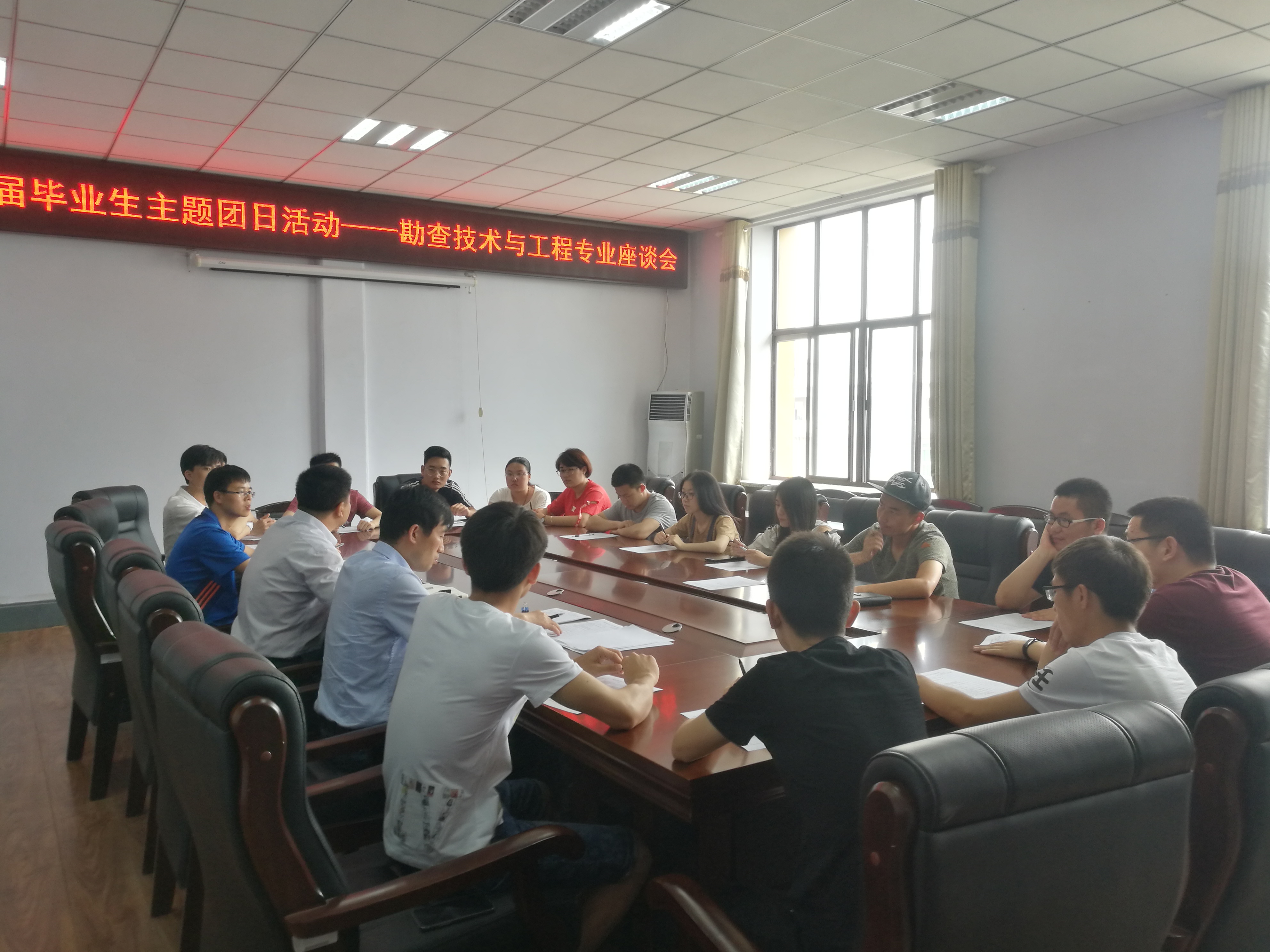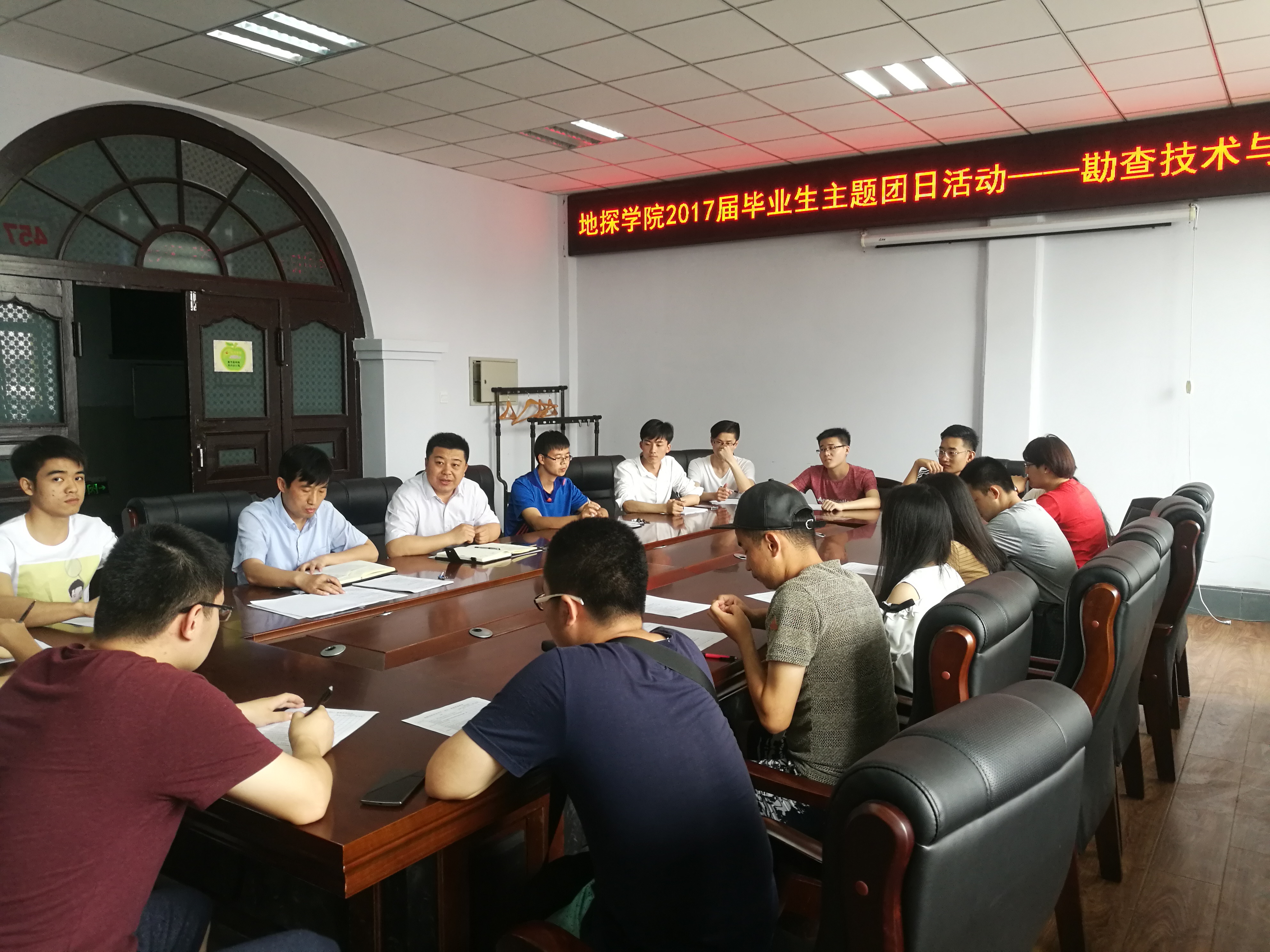 为积极倡导,营造和谐向上的校园文化氛围,激发同学们眷恋母校,感恩师长,爱岗敬业,报效祖国的归属感,责任感和使命感,引导广大毕业生自觉向党中央看齐,以优异的成绩迎接党的十九大胜利召开,永利yl23411于2017年6月24日组织231303班团支部、231304班团支部、231305班团支部联合开展毕业班最后一次主题团日活动,公司党委副书记兼副经理宋宏宇教授,副经理陆继龙教授,地球物理系副主任韩复兴教授,团委书记司镇通老师以及各团支部员工代表参加了本次活动。