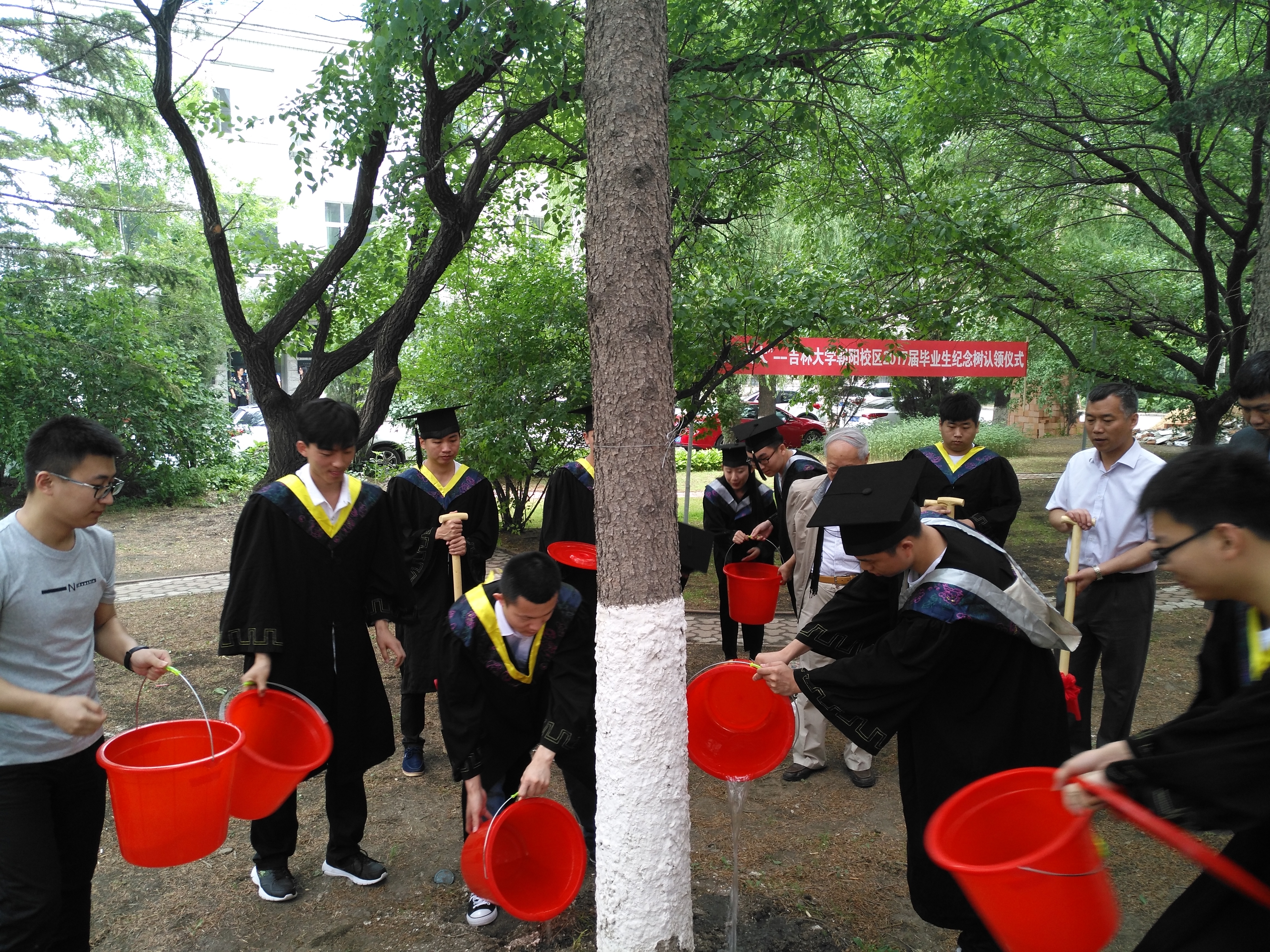 首先宋书记向毕业生表达了不舍和殷切期望并阐述了此次活动的意义和重要作用。随后宋书记宣布本次纪念树认领仪式正式开始,在场老师和毕业生们一起为纪念树培土浇水。最后党委书记黄忠民致辞,黄书记希望大家秉持树的精神,茁壮成长,做一个“有骨气、有节气、有风力、有定力”的吉大人。他坚信,这些小树傲然挺立、直刺青云之日,必将是同学们意气风发,叱咤风云之时。仪式在热烈的掌声中结束,同学们纷纷表示,毕业纪念树将会成为毕业生与母校感情维系的纽带,成为大家对母校深深眷恋之情的牵挂与寄托,相信同学们一定会带着母校的期盼与祝愿勇往直前,鹏程万里。(永利yl23411团委通讯社撰稿:郭鹏超 摄影:郭鹏超)