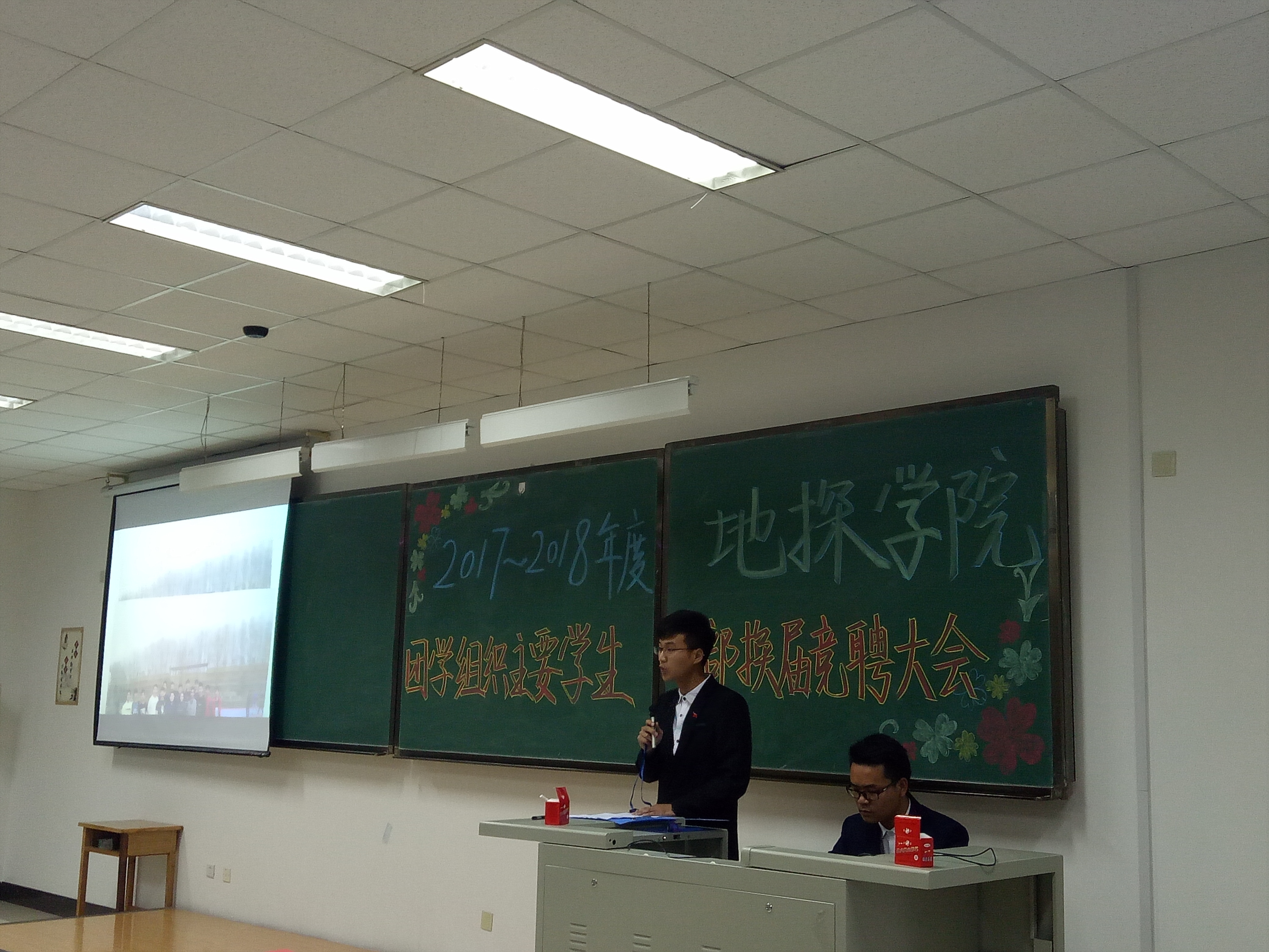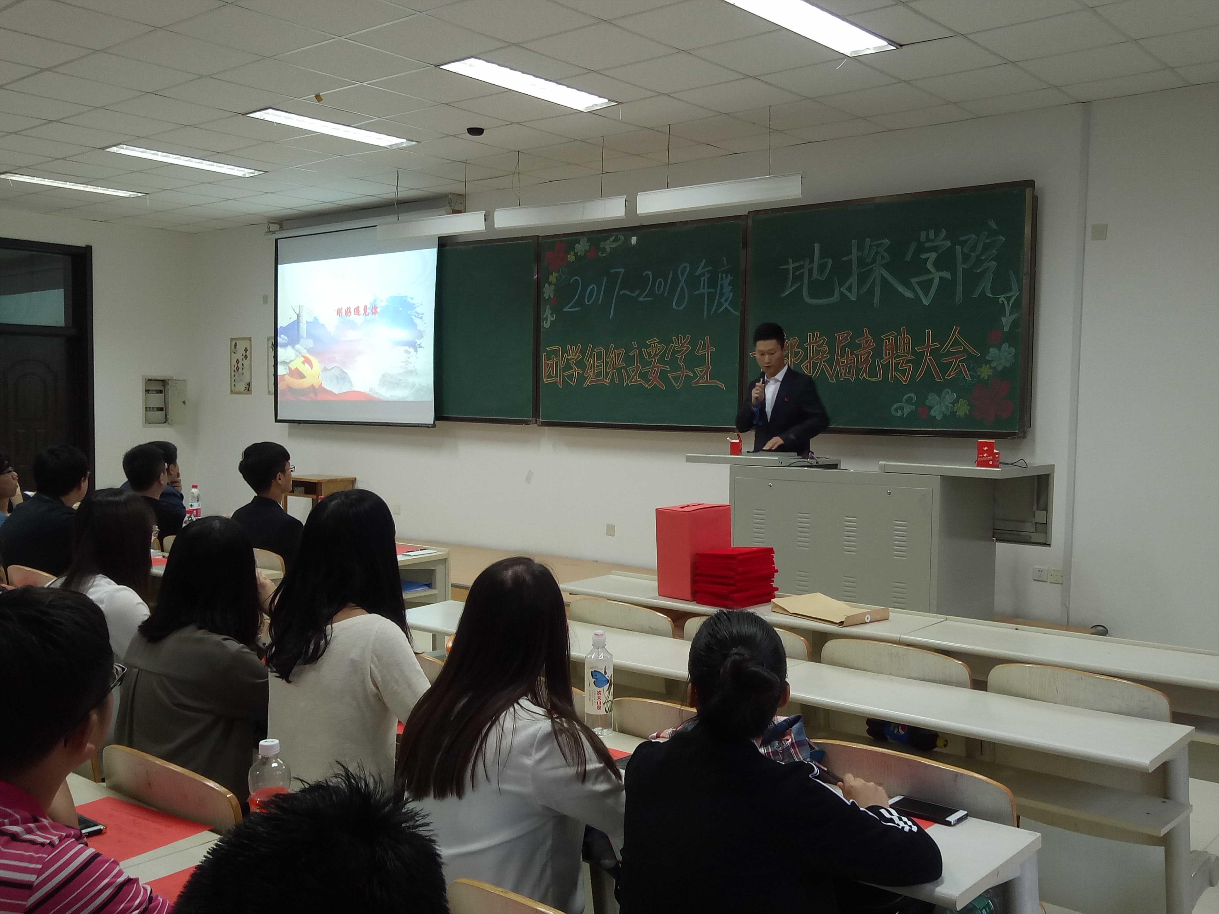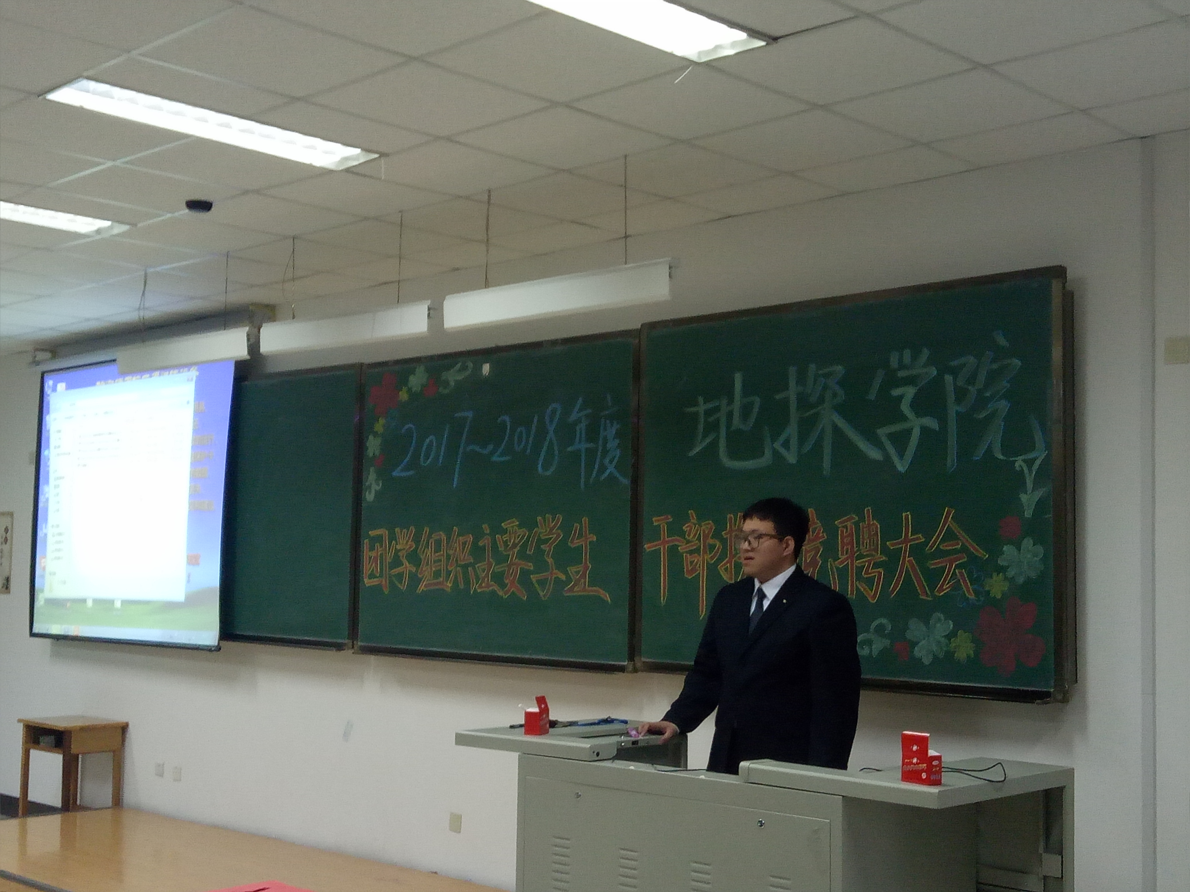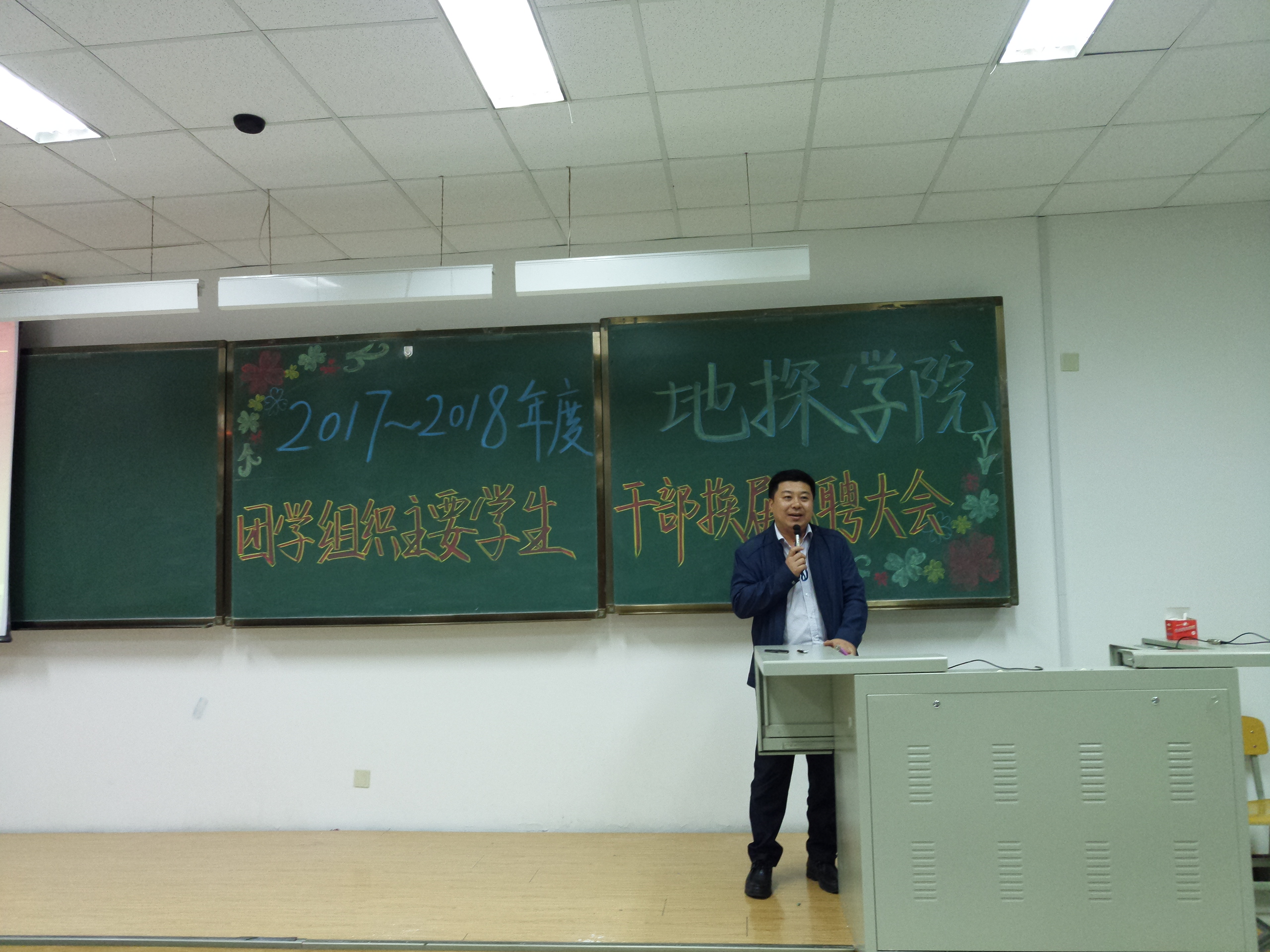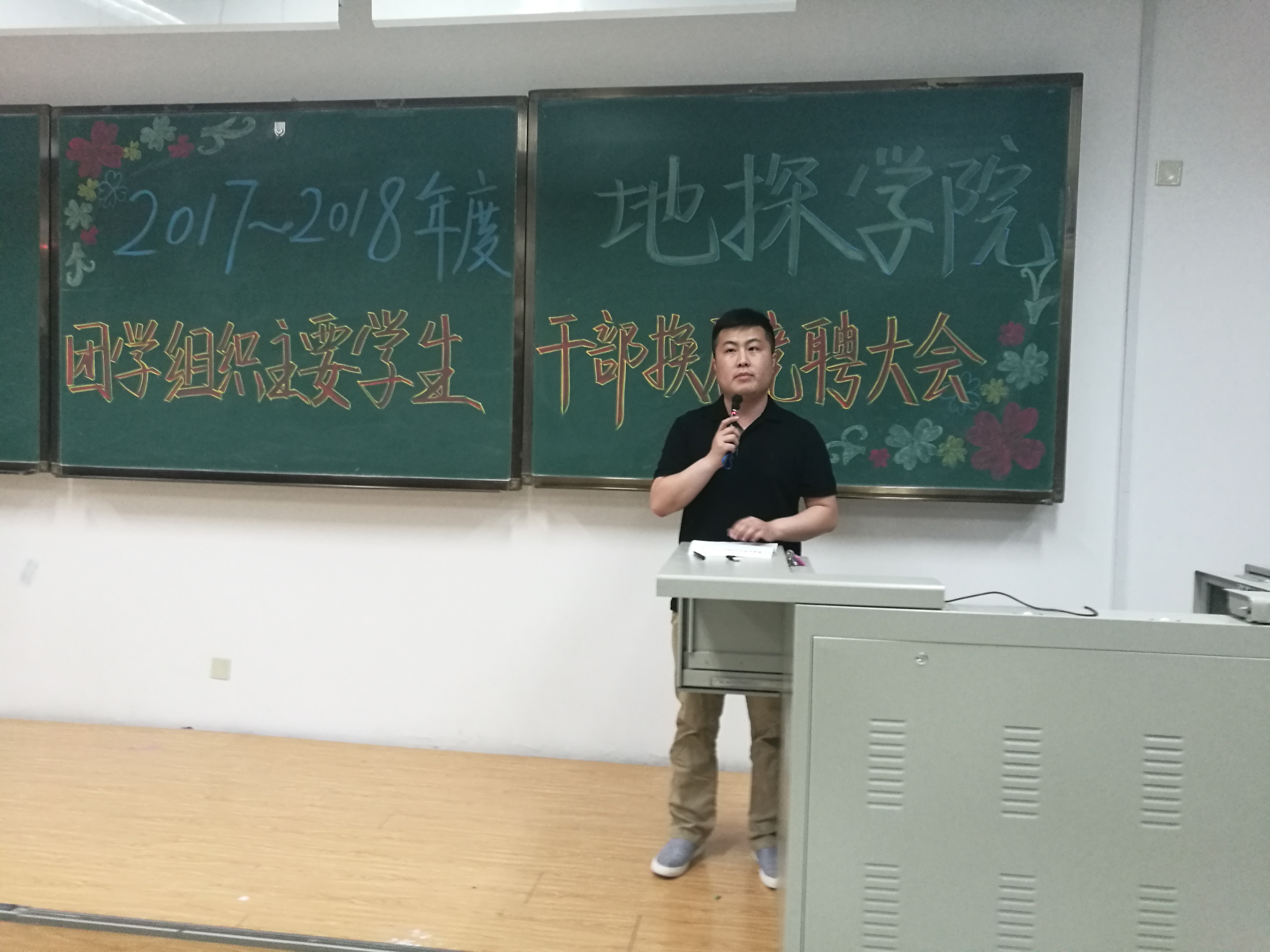 竞聘结束后,与会的各位老师与员工代表进行了民主投票。在等待统计结果的过程中,进行了优秀社团组织表彰,并由于学武老师为优秀社团负责人颁奖。在短暂的休息结束后,选举产生了2017届团学组织主要员工干部,团委书记司镇通老师宣读了任命决定,并向新任职员工干部颁发聘书,进行合影留念。最后,由宋书记为本次发言致辞。他的发言充满了对地探团学的深厚感情以及对大家过去一年工作的肯定,并寄厚望于新一届团学组织,希望大家能够在各位老师的指导下,同舟共济,开拓创新。最后,伴随着永利yl23411校歌,此次大会圆满结束。