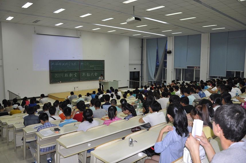 2014年9月1日晚6点,永利yl23411于李四光教学楼第二阶梯教室召开了2014级新生年级大会。大会由2014级辅导员司镇通老师主持。