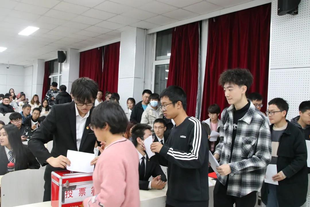 汇报工作结束后院团委副书记樊轩铄老师为第二十一届团学组织主要员工干部颁发聘书并合影留念。颁发仪式结束后,第二十一届团委副书记孙鹏宣读团委书记处、员工会主席团、新媒体中心总编室主任选举办法及大会选举检票员、计票员名单。第二十一届员工会主席团成员张澜同学宣读第二十二届团学组织主要员工干部候选人名单。参加竞选的7名同学用充满激情的演讲向我们展示了他们出色的表现和工作能力,让我们感受到了蓬勃的朝气,热切的情怀、执着的信念。我们相信通过本次竞选,一批有能力、有志向的同学将进入团学组织为永利yl23411的发展贡献自己的力量。演讲结束后,与会老师和员工代表通过民族投票、现场核票确定第二十二届团学组织主要员工干部最终人选。大会认定2019级武永娜、闫翾、齐鑫禹同学当选第二十二届团委副书记,赵奥赛、张凯文、黄佳慧同学当选员工会主席,张乃千当选新媒体中心总编室主任。