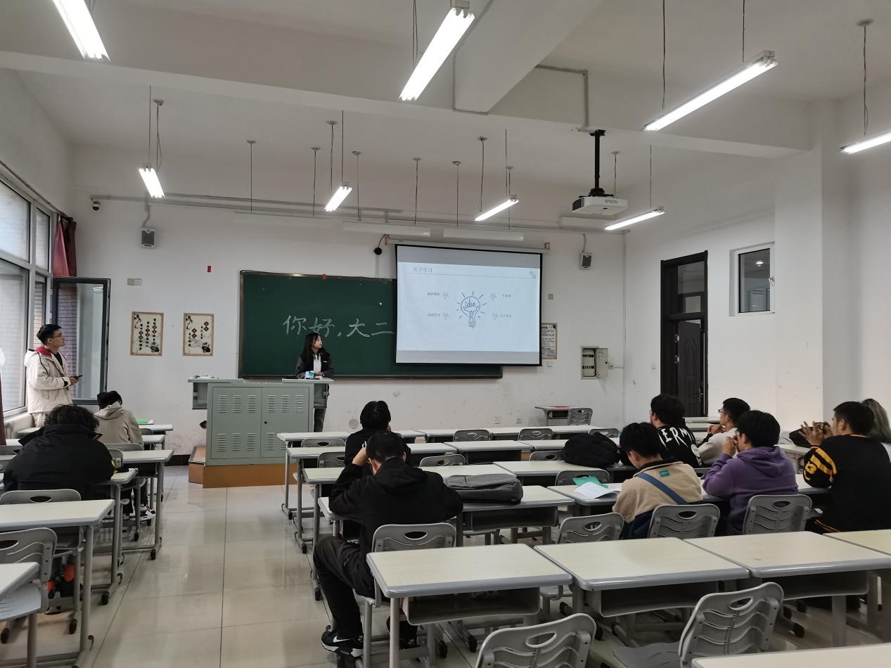 首先韦佳汛学姐从通识课程、专业课、英语以及实习四个方面为我们详细的介绍了大二期间应该如何学习,使同学们对于大二的学习有了更加明确的方向。随后张乃千学长和同学们进行交流,让大家对团学组织有了更清楚的认知,加深了团学组织在同学心目中的形象。最后,刘羿轩学长结合自己的亲身经历,为我们详细地介绍了老员工创新创业大赛的具体流程以及保研、竞赛、课外学分等相关内容,使得同学们对接下来的老员工活有了更深层次的认知。