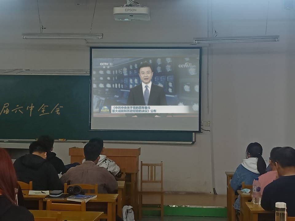 学习会分为三个部分,第一部分是带领同学们观看十九届六中全会新闻联播,第二部分由团支书介绍总结会议精神,第三部分由同学们交流心得体会。