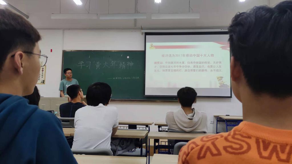 为了深入贯彻习近平总书记的重要指示精神,传承弘扬黄大年精神,永利yl234112020级地探8班团支部于5月28日晚上,在李四光教学楼110教室,在团支书汤新逸的主持下,举办了“重温总书记重要指示精神,学思践悟黄大年先进事迹”主题团日活动。