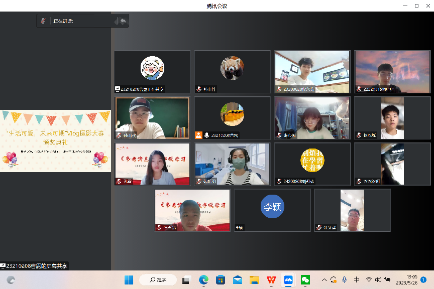 本次活动分三个阶段。5月1日至5月3日为第一阶段,员工自由选择参赛途径:团队赛道或个人赛道。5月4日至5月20日为第二阶段,参赛者进行拍摄取材,期间由参赛者本人或团队进行编导剪辑。5月21日至5月27日为第三阶段,地学五院员工朋辈心理辅导员组织立项成员,对参赛选手精心策划的Vlog作品进行统一评分。5月28日,举行“生活可爱,未来可期”五院联合vlog大赛线上作品展示及颁奖典礼。本次vlog大赛面向地学五院近千名同学开展,累计收获投稿数十份。在本次Vlog大赛的评选中,最终评选出个人赛一等奖1名、二等奖4名、三等奖4名、优秀奖2名。团队赛一等奖一组、二等奖两组。