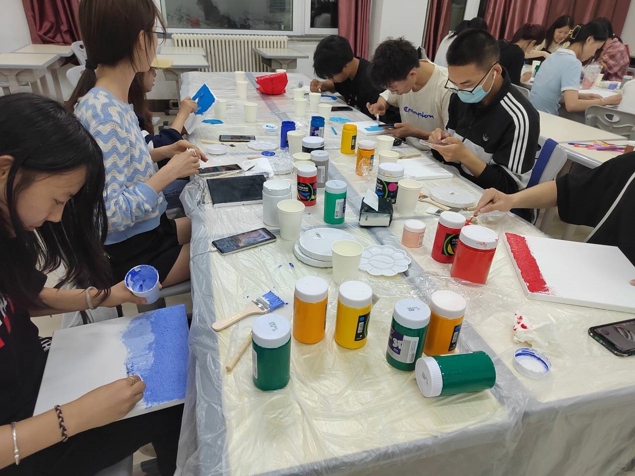 本次线下手工绘画活动,既满足了同学们对自由创作的需求,也在创作中发挥他们的创造力和想象力,提升同学们的动手能力。在活动中参与者全身心投入,有利于释放压力,减轻负面情绪。本次活动在愉快的氛围圆满结束,取得了良好的效果!