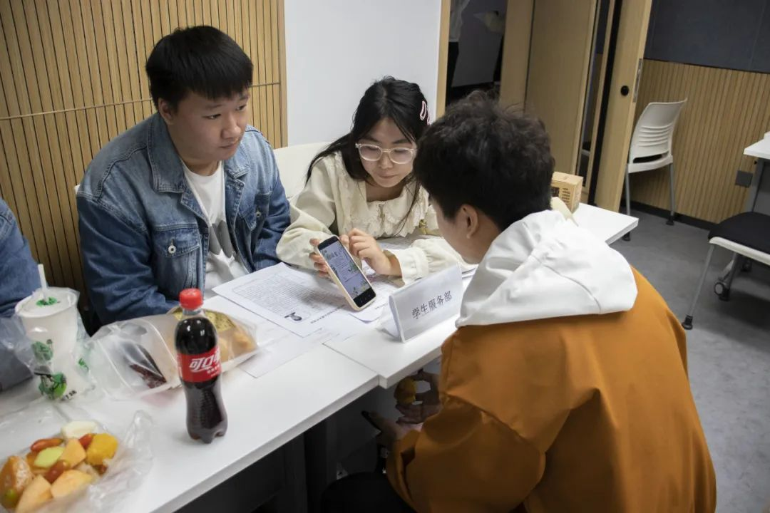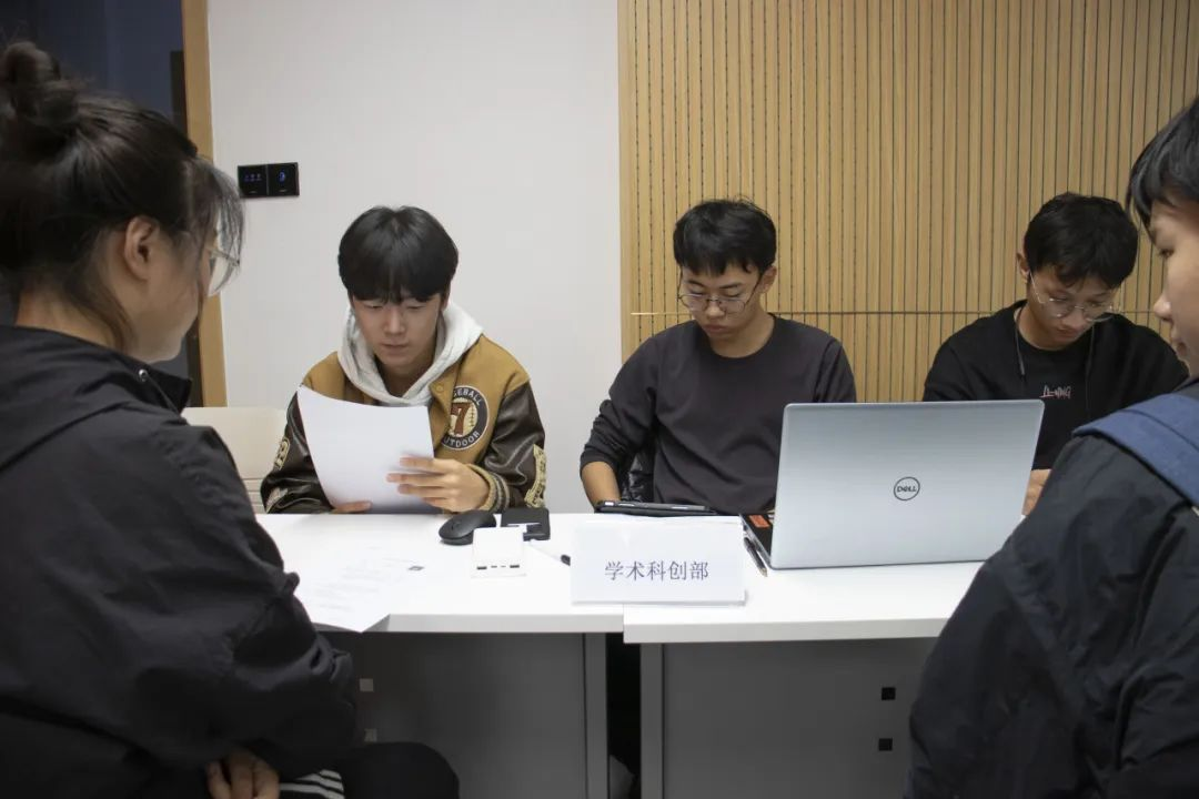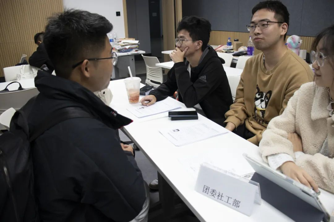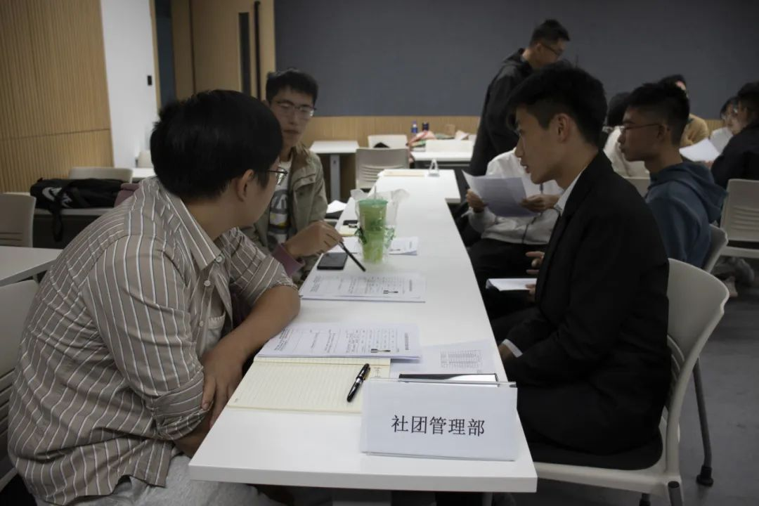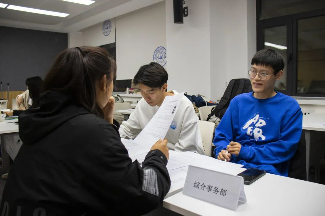 前来面试的2023级新生向各部门的工作人员展示自己的才华能力与自信昂扬的精神风采。整个面试环节井然有序,在各个部门共同的配合下顺利进行。