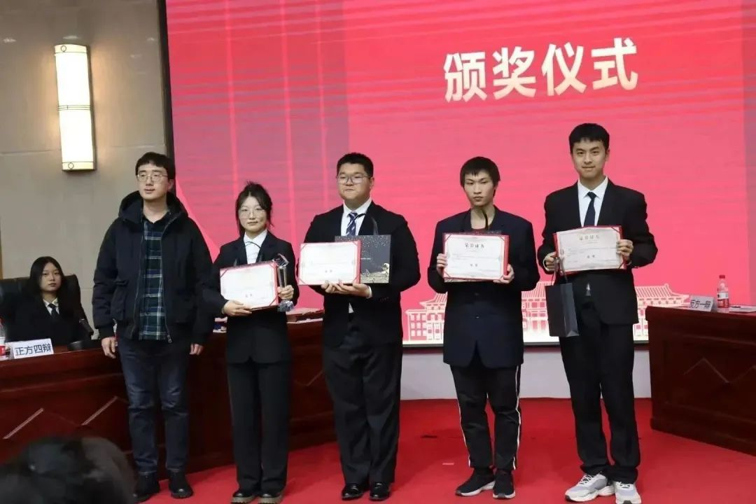 在观众提问环节结束后,评委们对比赛进行点评。评委们首先肯定了双方选手在辩论时的活跃表现,同时也提出了改进的不足之处,并希望有更多同学加入公司的辩论队。接着,辩论赛主席宣布反方“我觉得你说的不队”获得冠军,正方“什么档次和我作队”获得亚军,正方三辩杨润泽获得本场比赛的最佳辩手。活动最后,辅导员老师为参赛选手颁发奖品及证书,嘉宾与评委上台合影留念。