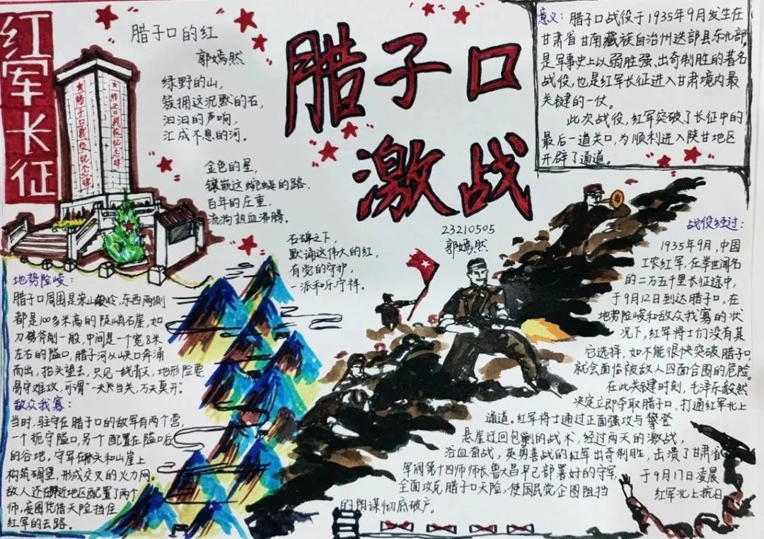 在活动的最后,选取出了14幅优秀作品粘贴于展板上。展板特别设计了金线相连部分,用金色的线将手抄报与中国地图上的对应位置相连,让同学们更直观地了解到烈士所在地,加深对英雄事迹的了解。