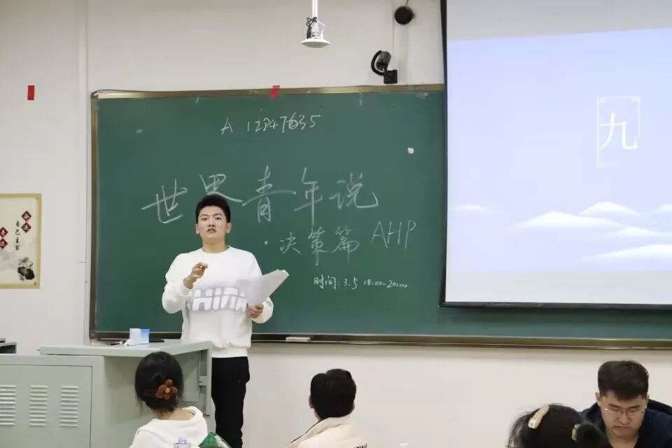 新学期伊始,为丰富同学们的课余生活,提高同学们的综合素养,永利yl23411团委办公室于3月5日在李四光309举办第一期世界青年说—决策篇。团委副书记孙铭阳、员工会社团管理部部长付晓茜、团委办公室主任田铭腾、团委宣传部部长汪升作为本次活动的评委嘉宾特邀出席。本次活动以无领导小组讨论的形式展开。无领导小组讨论是当前公务员招考、央国企校园招聘中评价人才的一种常用技术。在没有明确领导人的情况下,如何有效地组织和管理小组讨论,这对于我们这些即将步入职场的年轻人来说,是一个非常重要的问题。