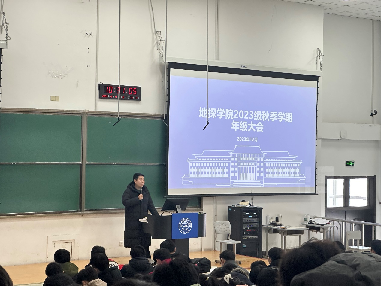 为推进公司期末考试工作的顺利开展,严肃考风考纪,帮助2023级本科生建立良好的考试复习观念,全面加强学风建设。12月19日,永利yl23411顺利召开秋季学期2023级本科生年级大会暨诚信教育大会。会议由2023级辅导员朱奕先主持,全体2023级本科生参加年级大会。