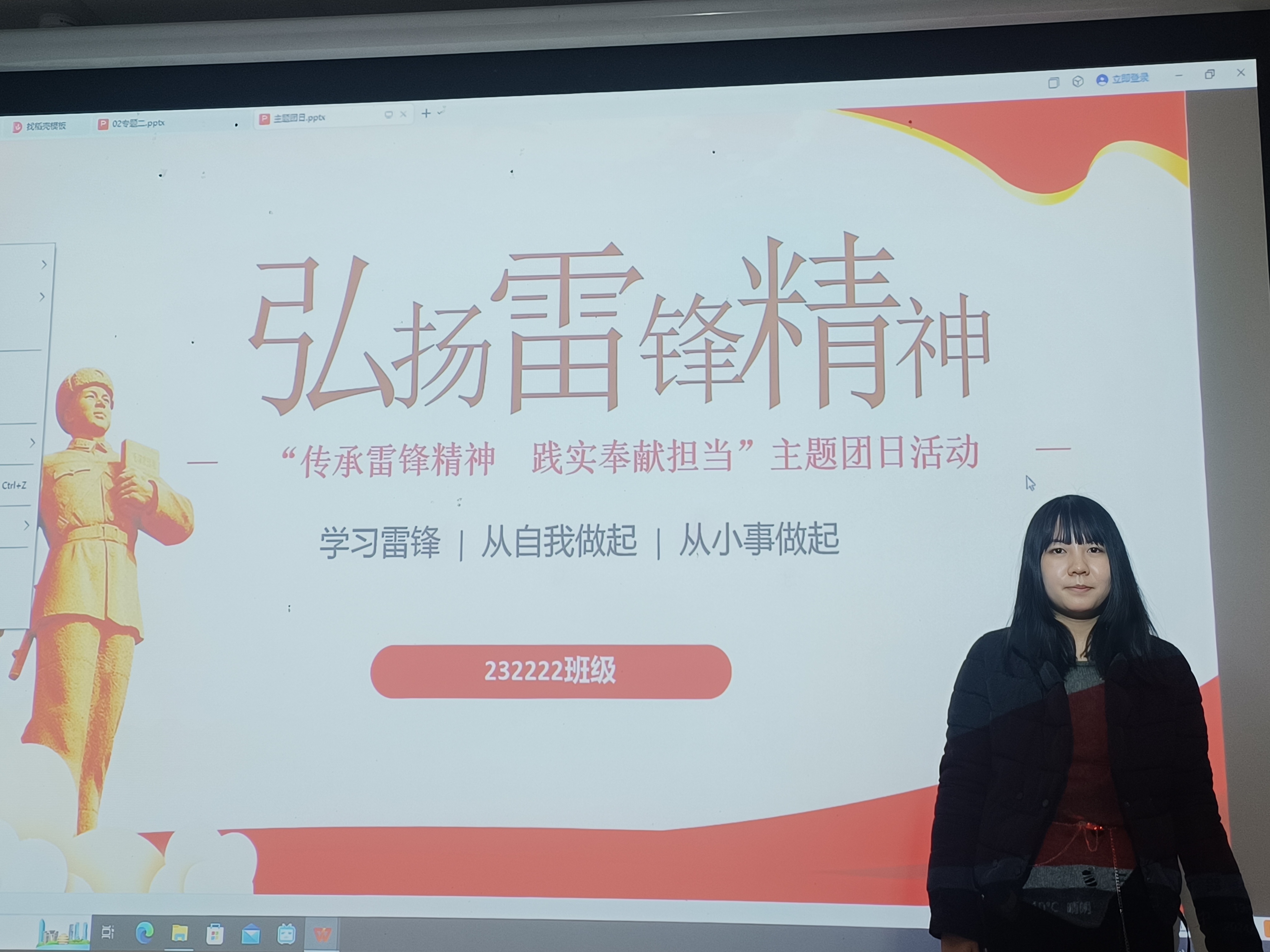 为贯彻落实习近平总书记关于青年工作的重要指示精神,引导团员青年不断提高思想认识,2022级2班团支部于3月2日在302教室组织了“传承雷锋精神践实奉献担当”主题团日活动,从四个方面学习雷锋精神。此次团日活动由团支书徐思涵主持。
