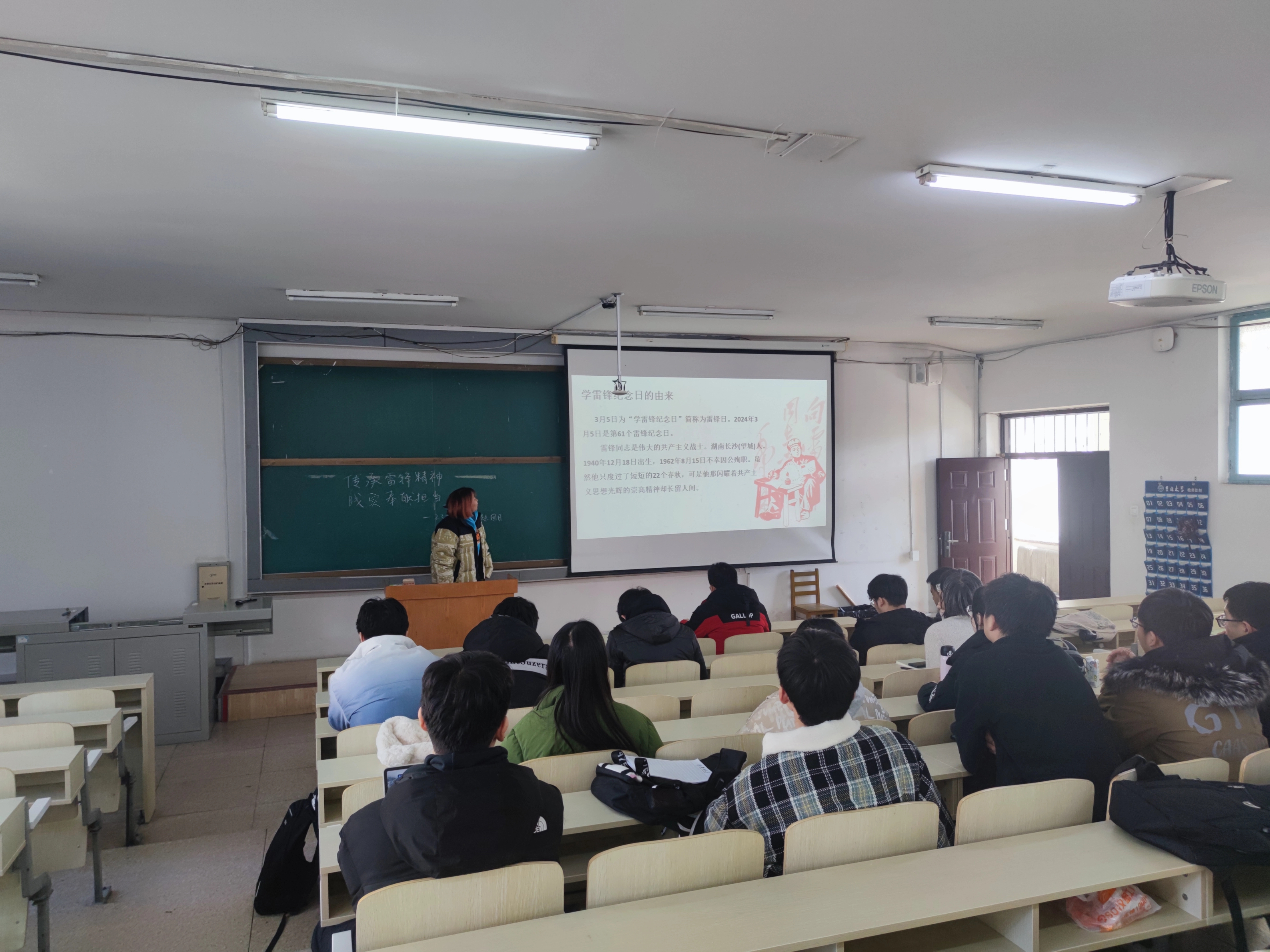 此次学习由五班团支书高美凝做相关内容讲解。首先向同学们介绍了学雷锋纪念日的由来,雷锋同志因公牺牲后,他的日记陆续被一些新闻媒体报导出来。《中国青年》杂志社认为雷锋是和平时期青年的一个楷模,打算在1963年3月2日出一本合刊介绍雷锋事迹。2月17日,杂志社给毛主席致信并希望主席能为雷锋同志题词。毛主席得知后,为了全面概括雷锋同志一切从人民利益出发、全心全意为人民服务的精神,写下了“向雷锋同志学习”这一著名题词。3月2日,毛主席的题词在《中国青年》上刊出。4日,新华社发通稿。5日,全国各大报纸纷纷刊载毛主席“向雷锋同志学习”的题词。后经中央决定,将3月5日定为雷锋纪念日。