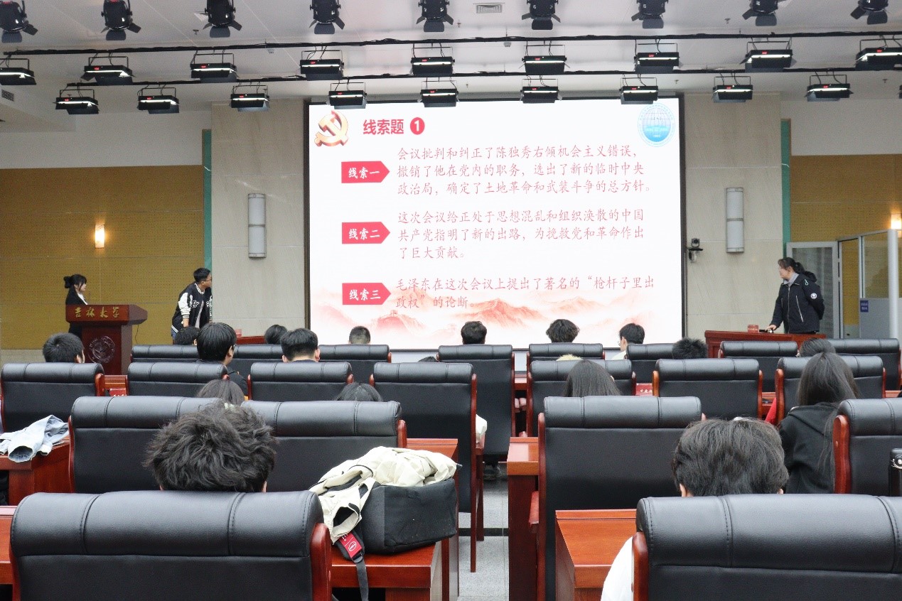 在“一站到底”环节,题目涵盖中国共产党历史、中国共青团团史和团的基本知识,参赛选手充分展现了对党团知识的掌握;在“争分夺秒”环节中,设有图片题、音乐题、线索题和排序题四种题型,参赛选手激烈抢答,展现了出色的反应能力和丰富的知识储备。在“党史微讲堂”环节,以中国共产党人精神谱系为题目,参赛选手分别对伟大建党精神、抗战精神、“两路”精神、“两弹一星”精神、改革开放精神、科学家精神进行演讲,他们深刻讲述了精神内涵,并结合具体事例和自身发展,对所选主题进行了创新性的思考。