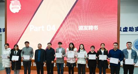 大会第二项内容为2019届研究生团总支、研究生会主要负责人张鹏、李星喆同学依次上台作任期内工作述职,两位负责人都对过去一年的员工工作进行了回顾,深切地表达了对团学组织的深厚感情和对2020届团学组织活动的殷切期望。接下来,由公司党委书记王爱民老师、公司党委副书记宋宏宇老师为2019届团学组织主要员工干部颁发聘书并合影留念。