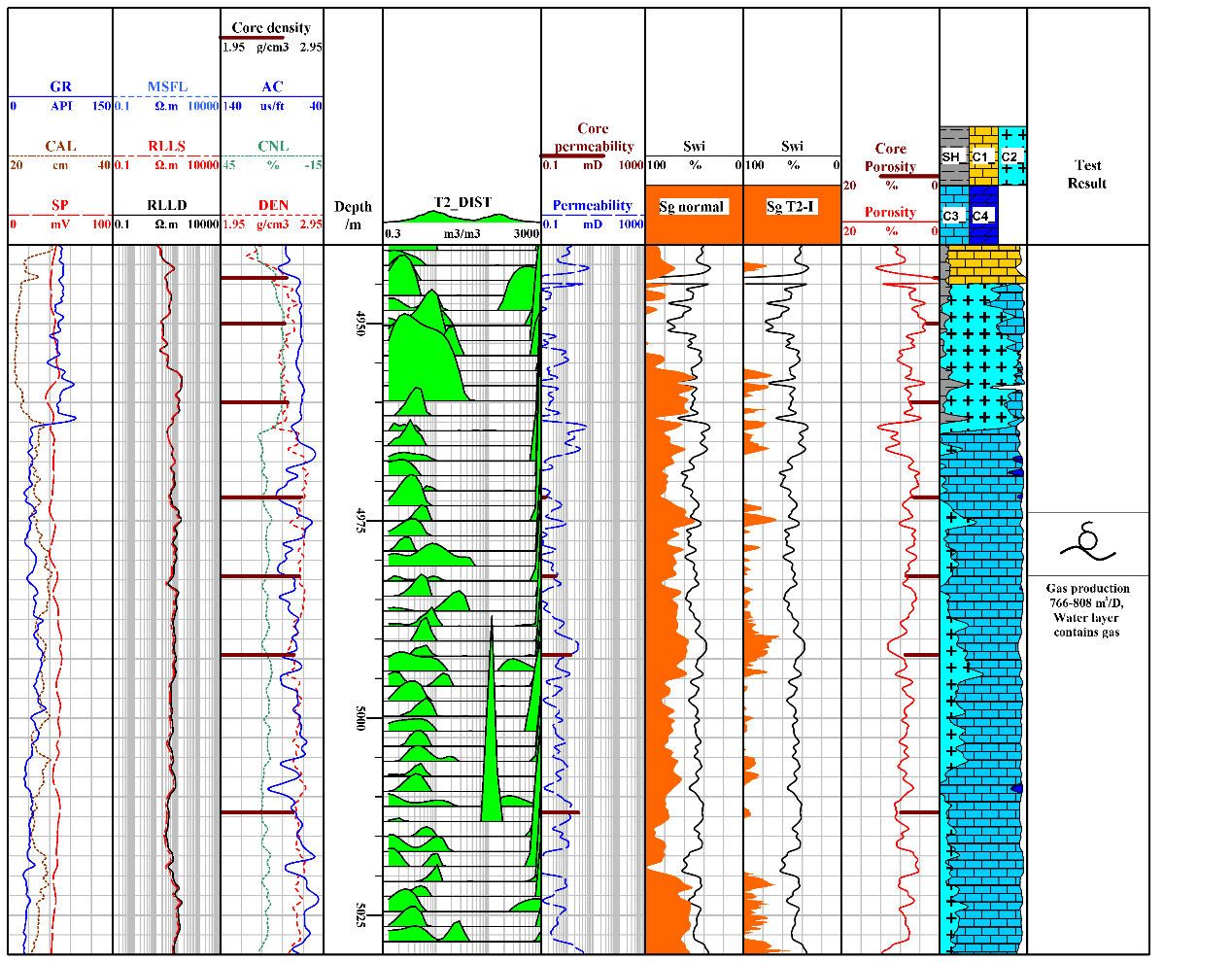 图5.基于T2-I模型采用核磁和电阻率测井数据联合反演饱和度应用实例