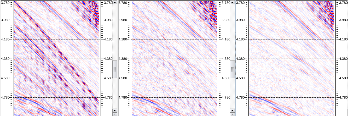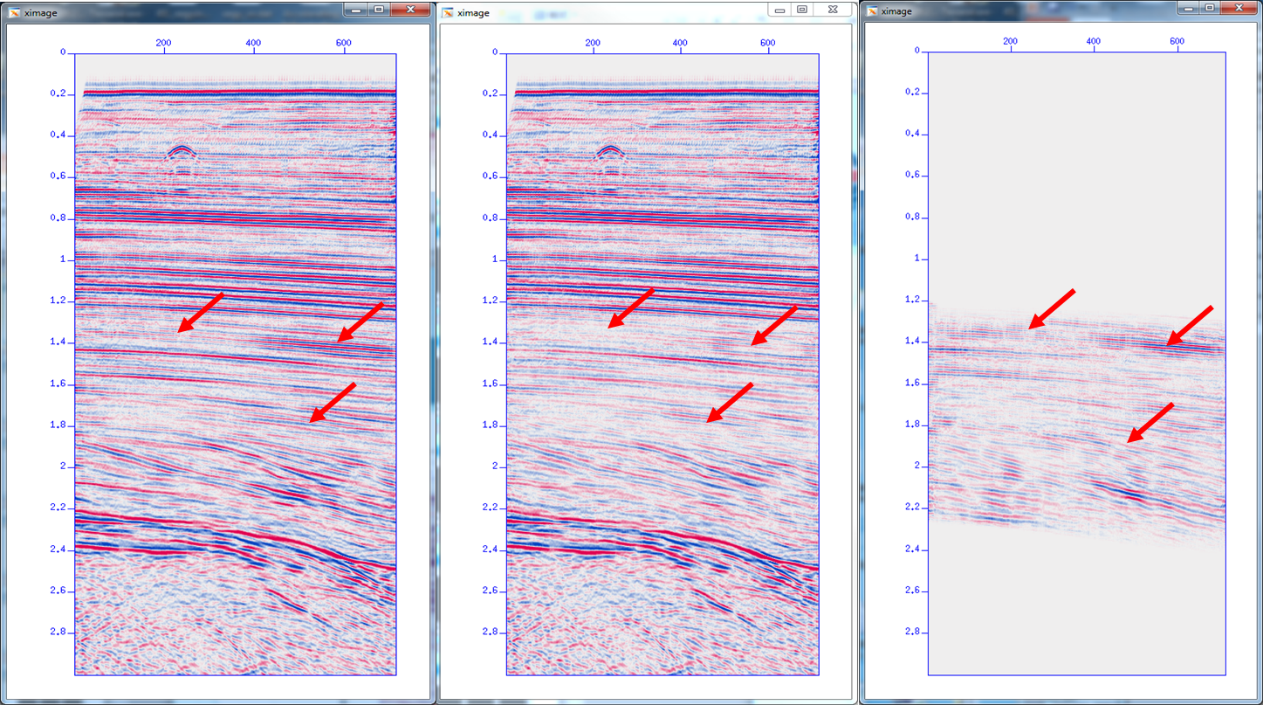针对层间多次波识别、预测进行了深入研究,提出了一套结合炮集、零偏剖面、cdp道集、速度谱的多域层间多次波识别标准,并以基于波动方程压制表层多次波的SRME技术为基础,将地震数据本身作为一个波场延拓算子,它不需要产生多次波界面的模型,也不需要知道地下结构的先验信息,一次反射通过地震数据自身褶积转换为多次反射,利用全波场重建基准面方法将炮点和检波点向下延拓到产生层间多次波的界面上,形成了基于数据驱动的共聚焦点层间多次波压制技术,达到保真压制层间多次波的目的。
