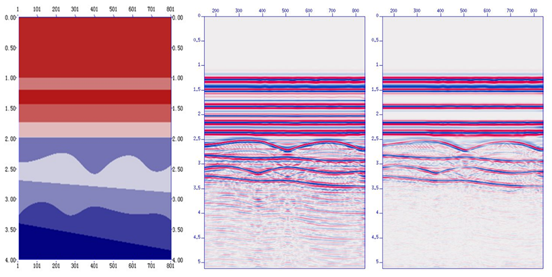 a.地质模型 b.常规叠加剖面 c.层间多次波压制后的剖面