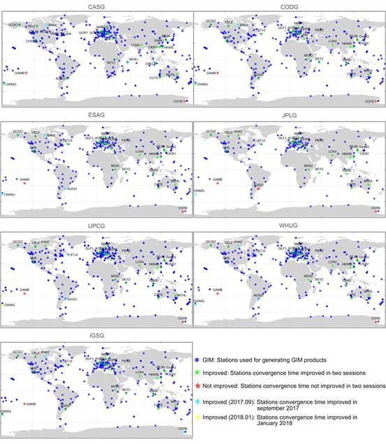 (1)IGS观测站分布密集且均匀的区域,GIM产品作为外部约束可以明显加快定位收敛。IGS观测站密度较低且分布不均匀的区域,因GIM产品精度较低,加快定位收敛的效果不显著。快速产品因参与建模的观测站数量较少,提高收敛速度的效果方面不如最终产品显著,尤其是在南半球和靠近赤道的区域。