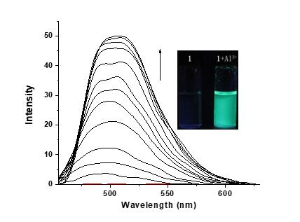 铝是岩石圈中第三丰富的元素,在现代社会中具有广泛的应用。铝离子广泛存在于空气、水和土壤中,并且可以通过食物链在人体内积累。然而,铝是生命系统的非必需元素,过量的铝离子进入人体中会损害神经系统和免疫系统。因此,检测饮用水和环境样品中的铝离子含量具有重要意义。为了避免铝离子水解,许多环境样品需要在弱酸性条件下测定。而利用荧光传感方法检测金属离子具有快速、简便、成本低等优点,因此开发可以在弱酸性条件下工作的高灵敏度和高选择性的铝离子荧光检测方法具有很重要的实际意义。