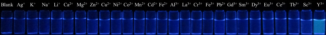 此外,研究中还发现该材料对钇离子具有选择性的荧光响应(Fig. 2),根据这一性质,研究者建立了一种钇离子荧光检测的方法.