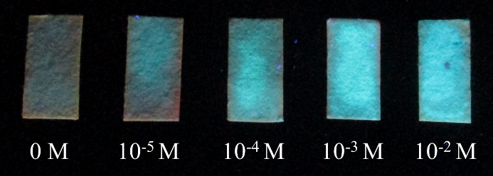 Fig. 4. Fluorescent (under 365 nm light) changes of test strips of L upon addition of Y3+ in water with different concentrations.