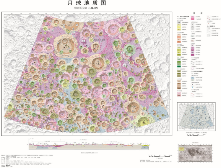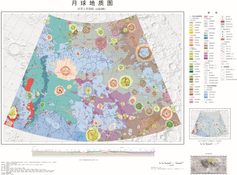 《1:250万月球地质系列图》包括全月中英文版《1:250万月球地质图》、《1:250万月球构造纲要图》、《1:250万月球岩石图》和30幅《1:250万月球分幅地质图》。永利yl23411团队负责承担《月球构造纲要图》(中英文版)编制(图1)及30幅《1:250万月球分幅地质图》(中英文版)中的6幅分幅图的编制任务。