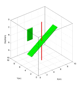 围绕全向钻孔雷达探测时的方位不确定性,针对井中环状四天线阵列(见图3),提出基于线性预测的方位估计算法及三维成像算法,克服了常规钻孔雷达的缺点,实现了技术的飞跃。由于钻孔内观测空间有限,定向钻孔雷达(BR)三维成像是一个具有挑战性的问题。我们提出了一种基于线性预测(LP)方法的波达方向(DOA)估计和基于偏移的三维成像算法。定向钻孔雷达由发射天线和包含四个小接收天线的均匀圆阵组成。四个接收天线被视为两个正交均匀LAs。两个阵列的组合消除了DOA估计中的模糊性。此外,移动窗口和基于阈值的估计提高了计算效率。根据估计的方位角,将每个深度处的测量信号分解为相应的方向。因此,在每个深度的每个方向上都有一个时间序列信号。在处理所有深度的测量信号后,我们获得了一个可用于水平和径向垂直剖面显示的三维数据集。然后,通过偏移处理径向垂直剖面数据,将时域信号转换为基于波场的三维图像。利用裂缝模型的模拟数据对算法进行了验证,重建图像能够很好地反映真实模型(见图4)。结果表明,我们提出的新方法是一种具有实时处理能力的有效方法(国家自然科学基金41874136、42074146)。相关成果发表在IEEE Transactions on Geoscience and Remote Sensing以及remote sensing上。
