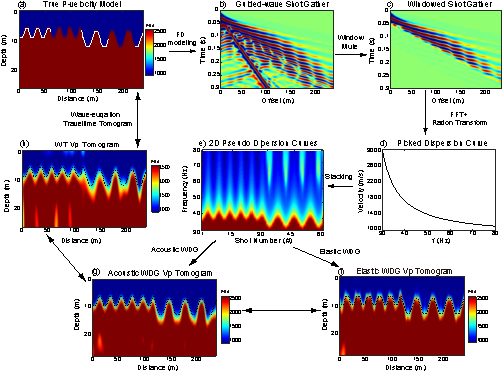 图4 Guided P-wave骨架反演流程及结果对比 (Li and Schuster, JGR, 2018)