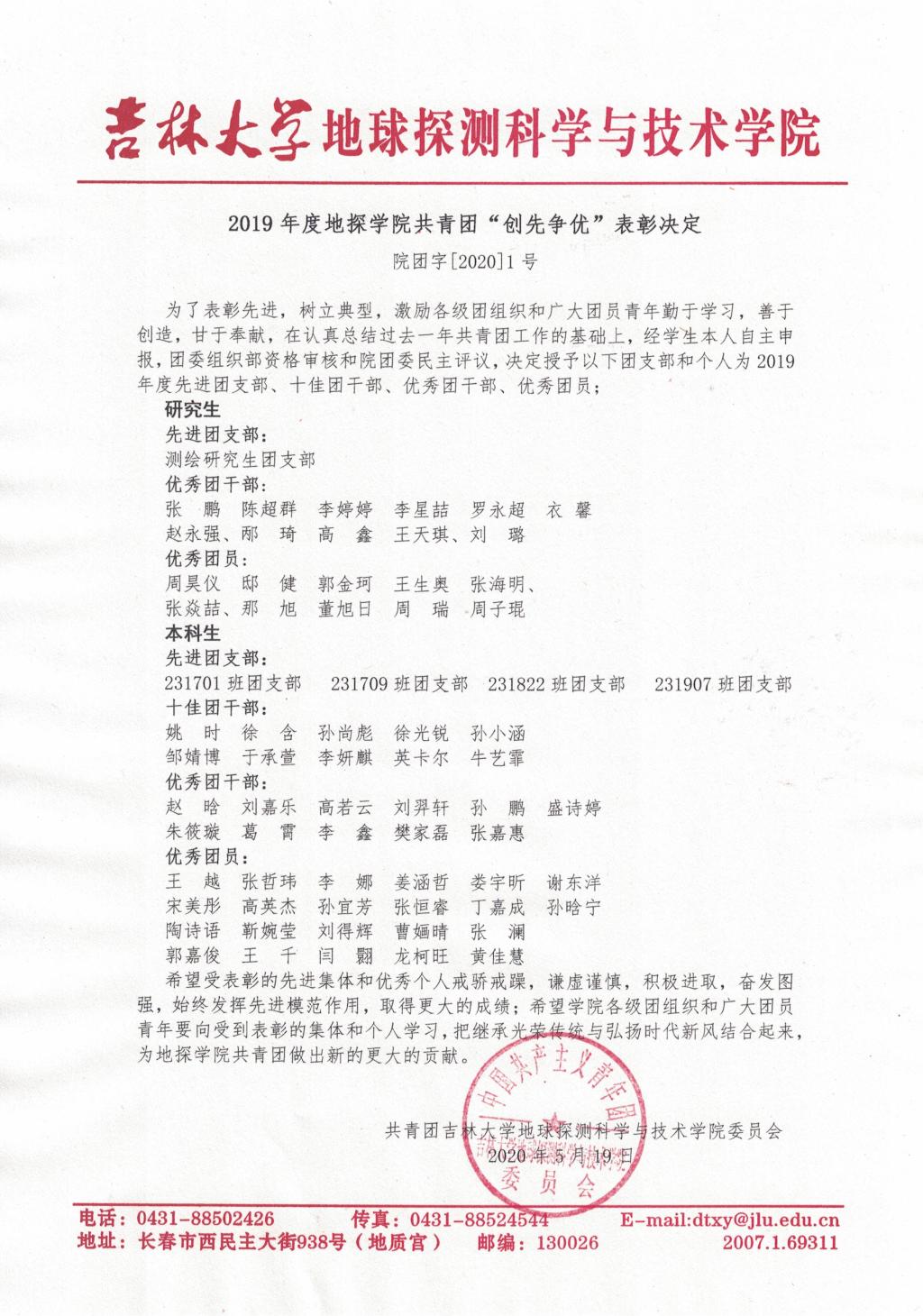 2019年度永利yl23411共青团“创先争优”表彰决定
