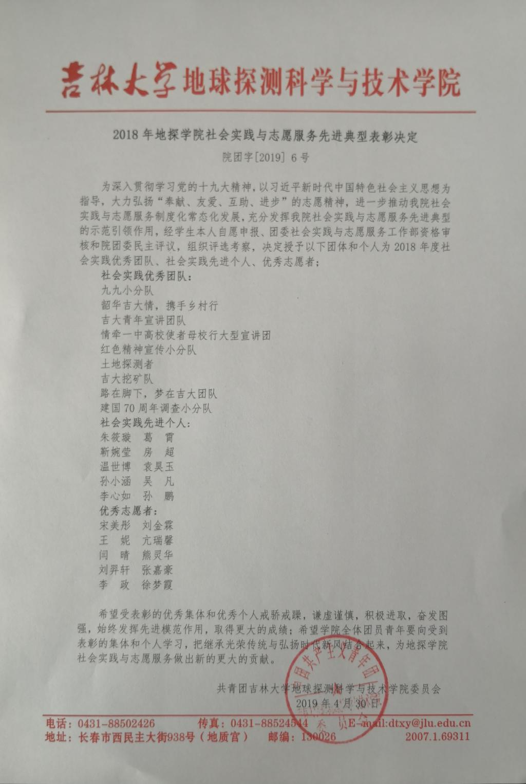 2018年度永利yl23411社会实践与志愿服务先进典型表彰决定