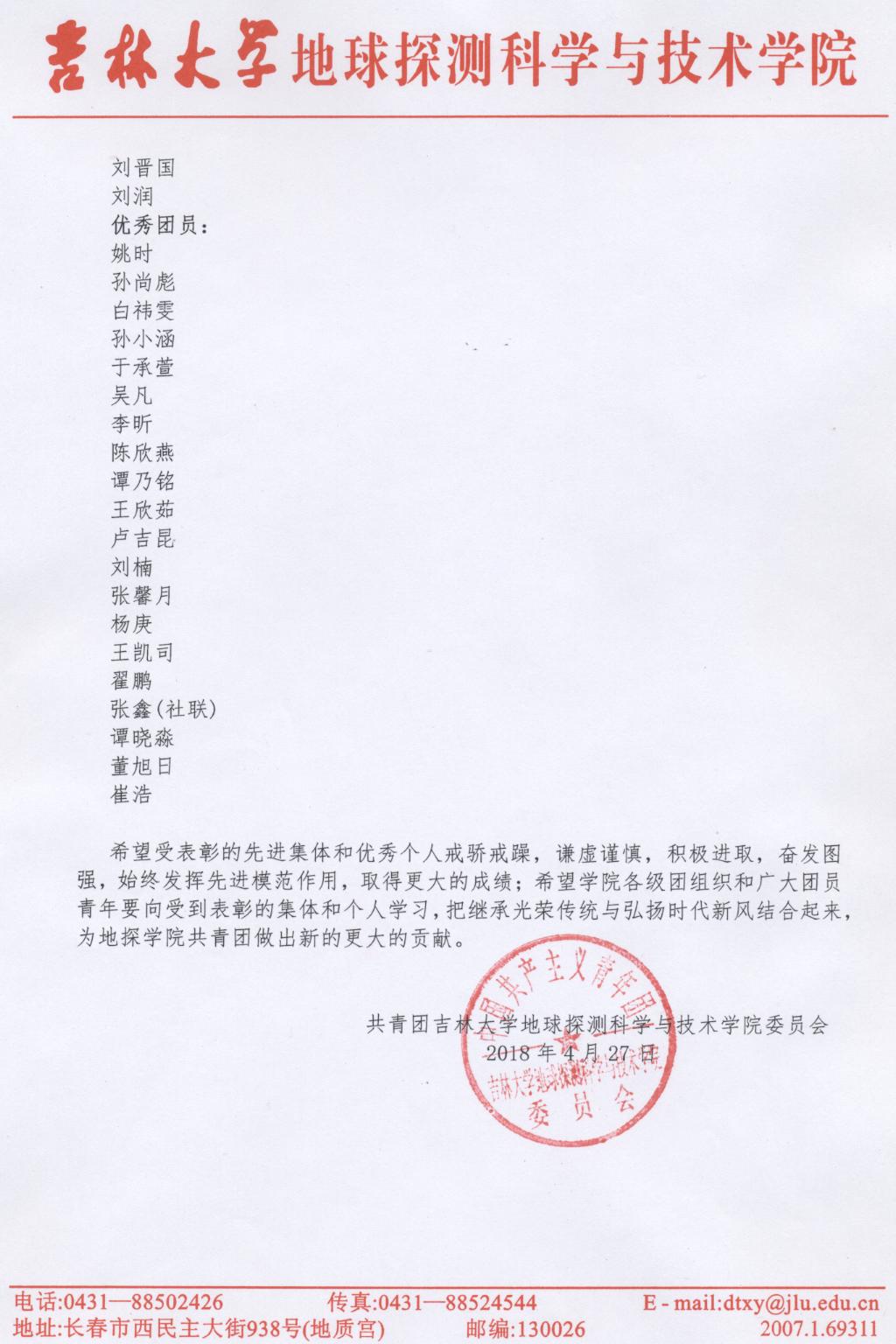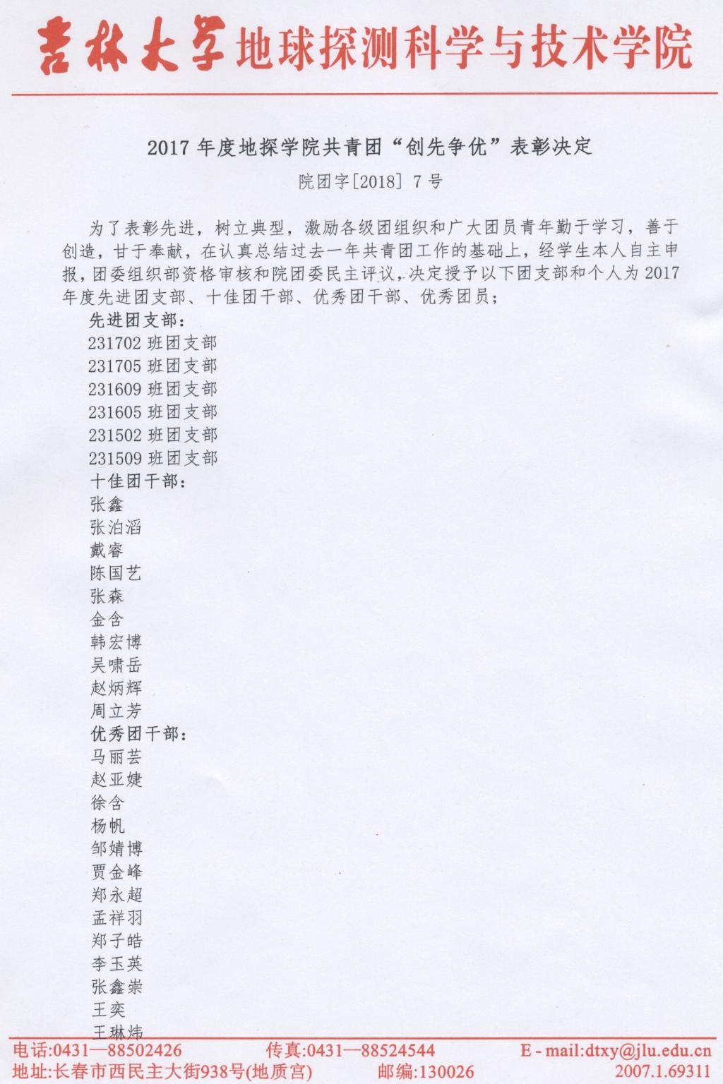 2017年度永利yl23411共青团“创先争优”表彰决定