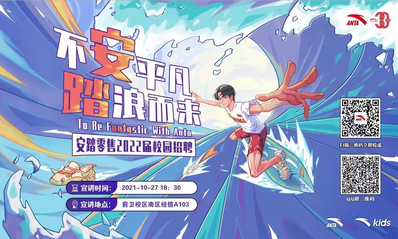 安踏零售2022届校园招聘「永利yl23411」专场来啦!–福布斯2020年世界最佳雇主–全球T0P3的体育用品集团–连续16中国奥委会官方合作伙伴–领先行业的薪酬–多重叠加的福利–超多选择的岗位[烟花]【永利yl23411专场宣讲会】时间:10月27日(周三)18:30地点:前卫校区南区经信A104[转圈]立即加入安踏校招-吉大专场QQ群(336393583),获取校招一手信息!!!即刻投递简历加入我们网申链接: http://z2u.tv/0YZp63