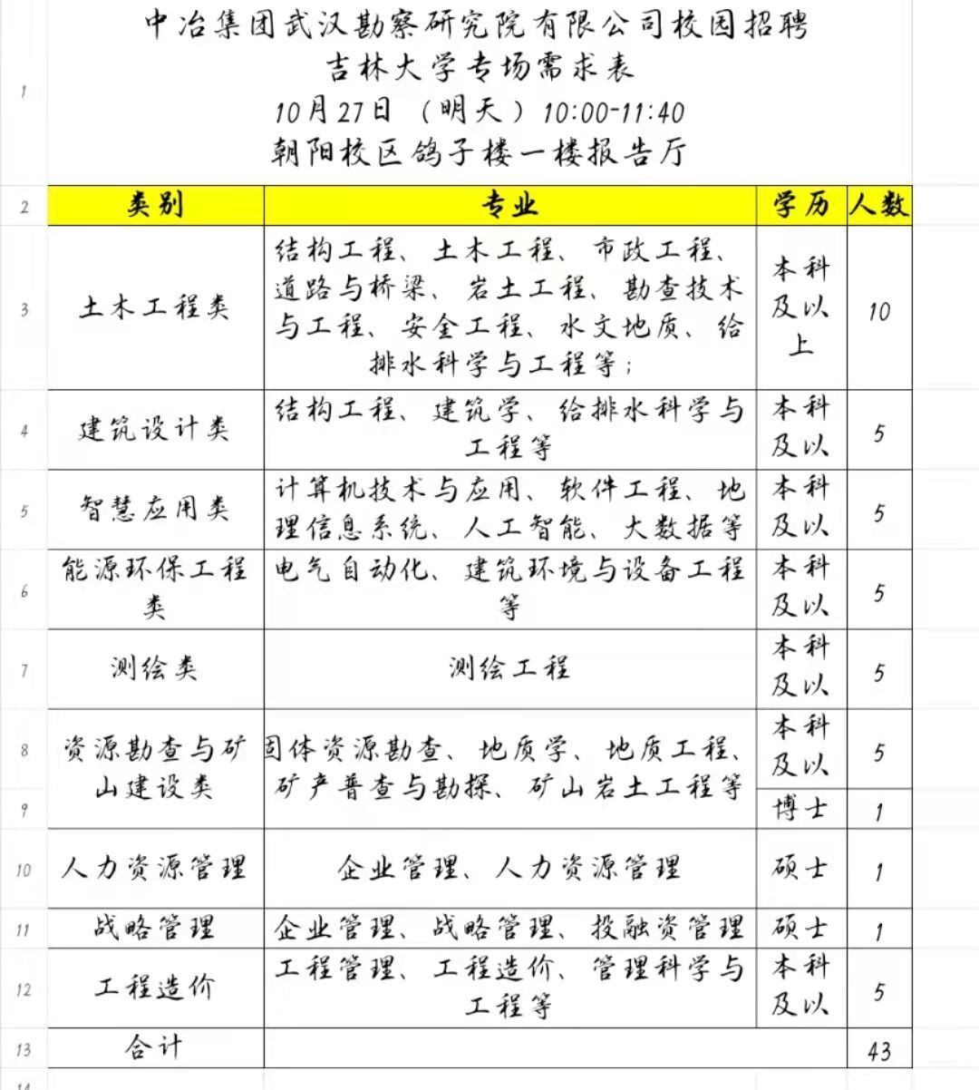 【2021招聘信息200】中冶集团武汉勘察研究院有限公司校园招聘