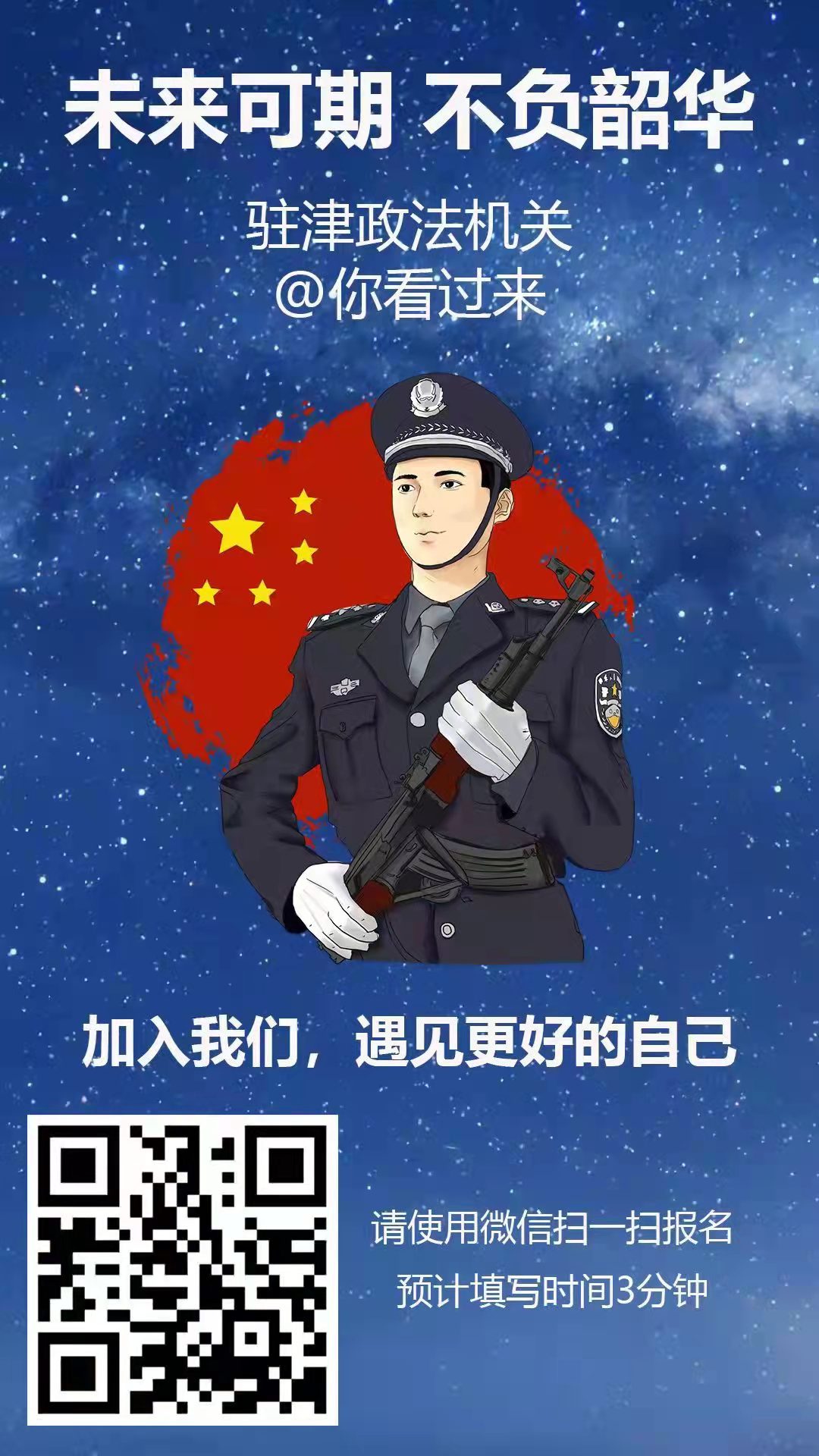 中央驻天津某政法机关招聘信息:面相对象:2022届应届毕业生,本科硕士博士均可。本单位公务员考试与国考 选调生等其他公务员考试均不冲突。请有意向员工扫码填写就业信息(预计3分钟左右),我们会和大家取得联系。