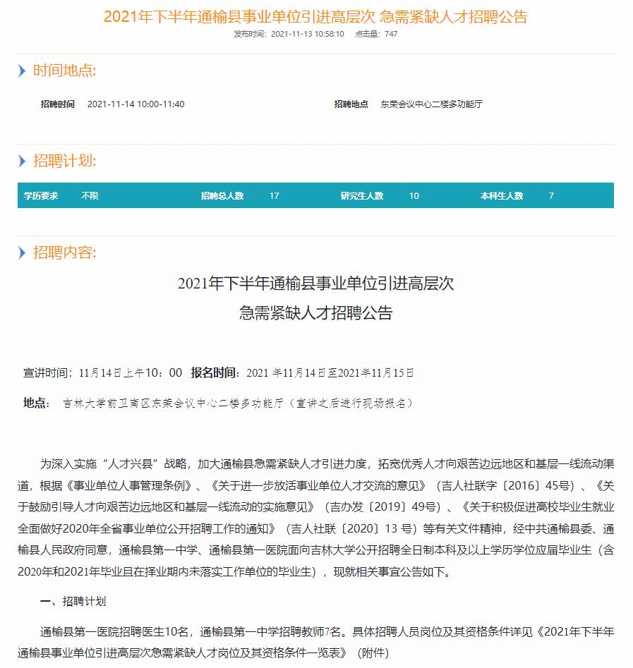 2021年下半年通榆县事业单位引进高层次急需紧缺人才招聘公告-永利yl23411就业网(jlu.edu.cn)