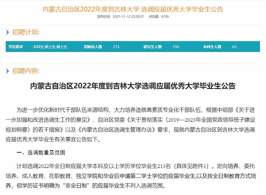 【2021招聘信息229】内蒙古自治区2022年度到永利yl23411选调应届优秀大学毕业生