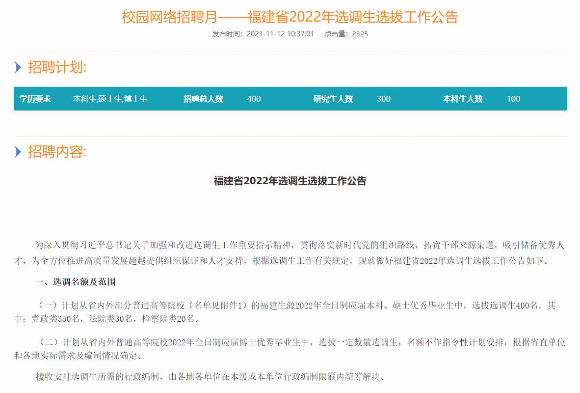 【2021招聘信息230】福建省2022年选调生选拔工作