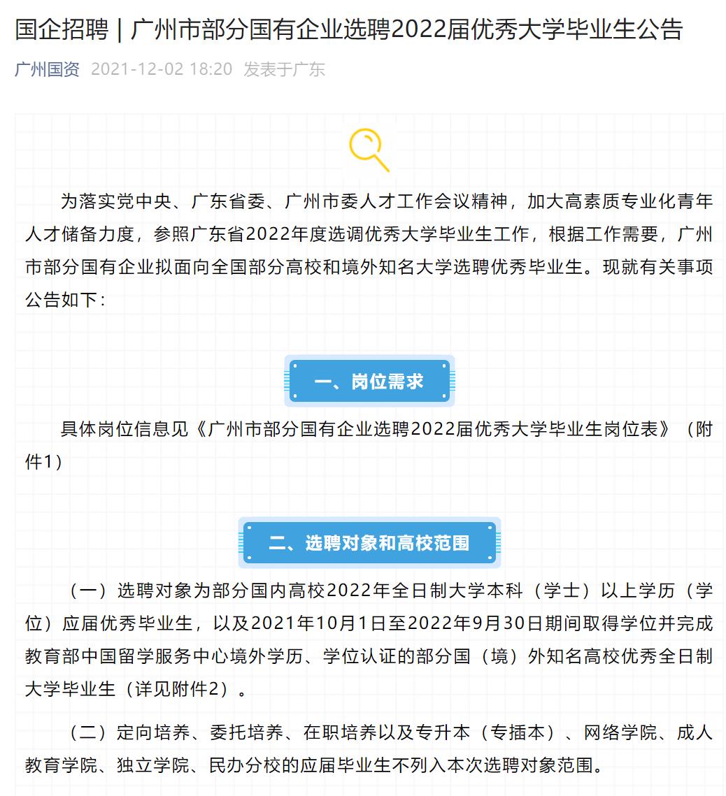 广州市部分国有企业选聘2022届优秀大学毕业生